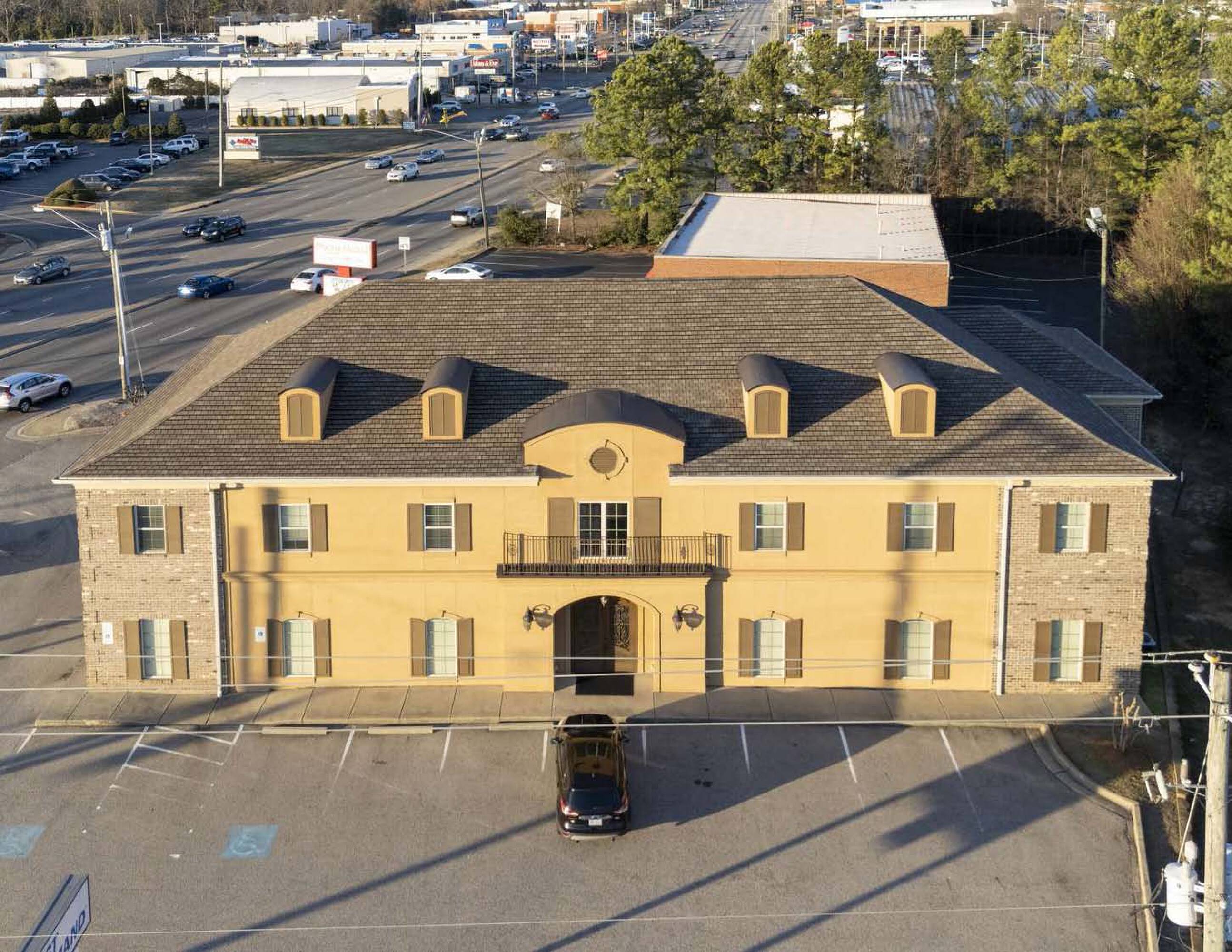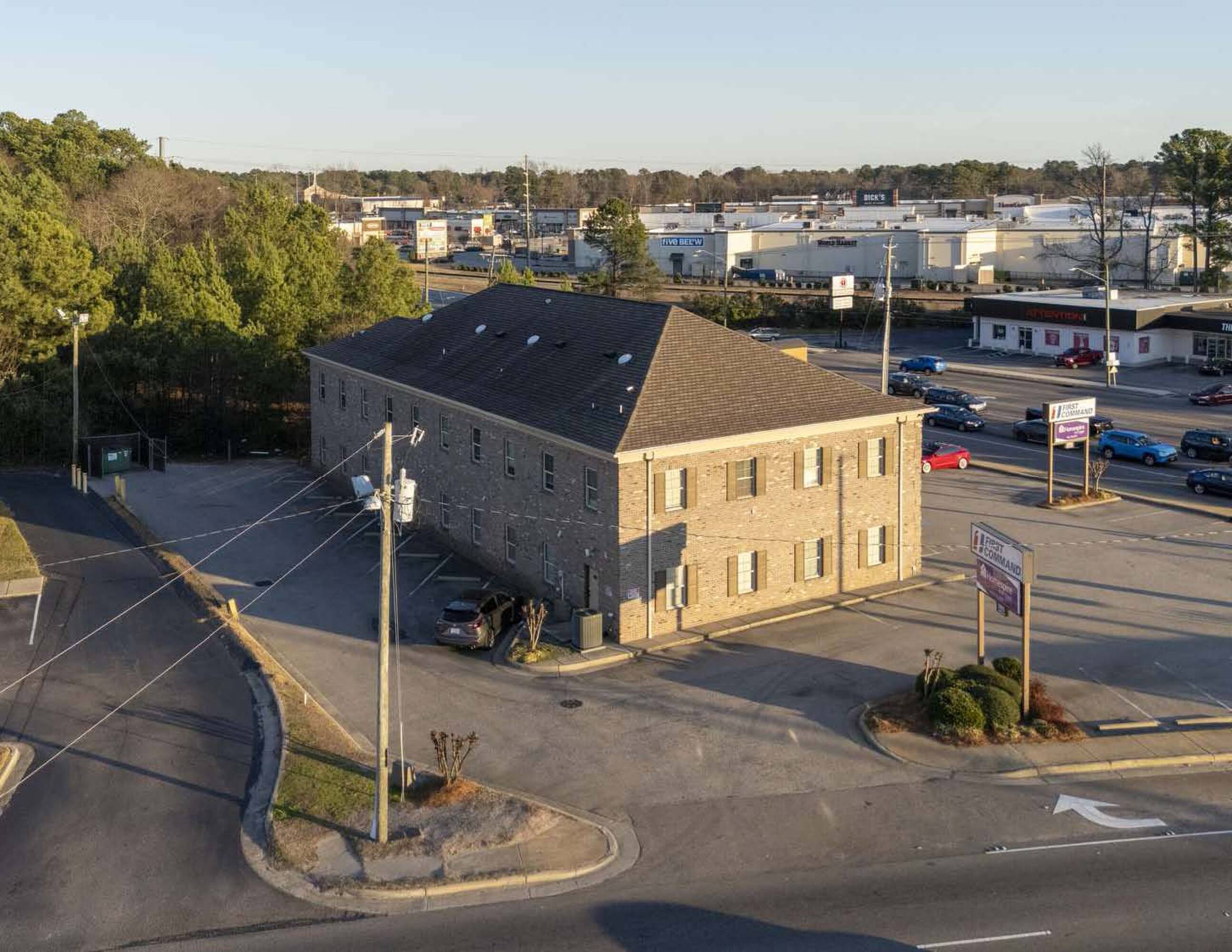 Two-story office building in Fayetteville's retail corridor.
