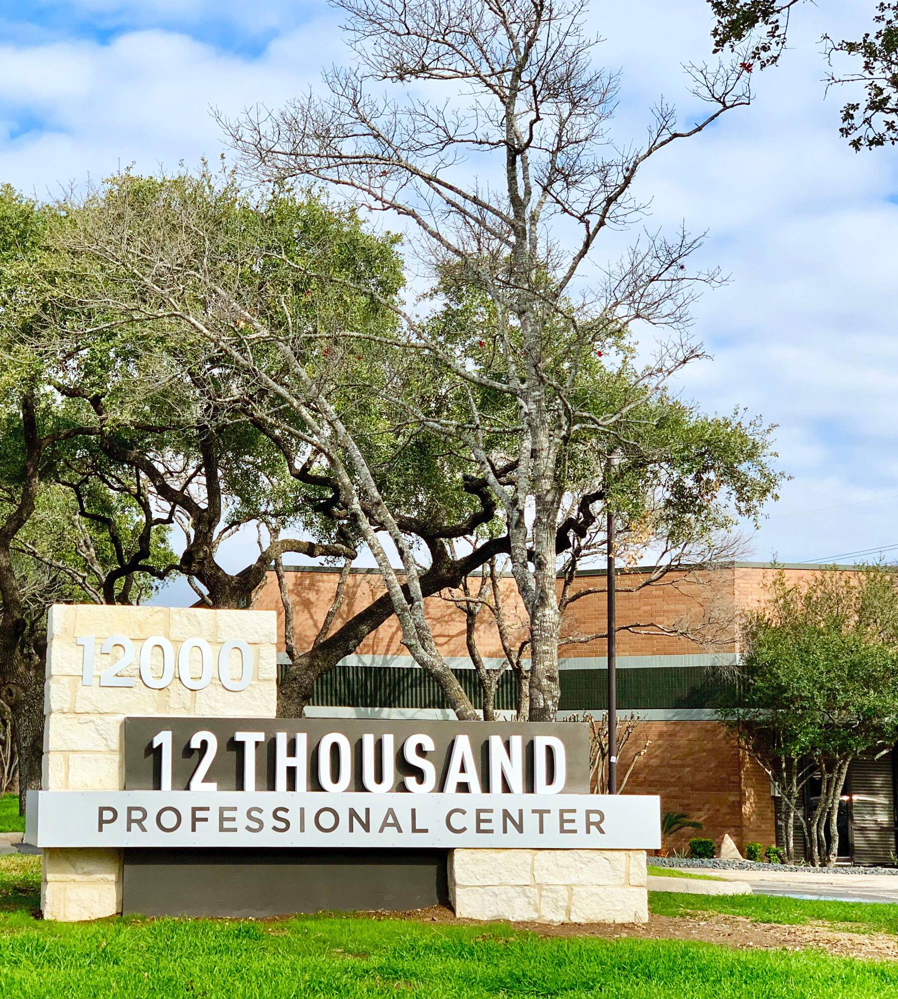 Professional center with upgraded landscaping and monument signage.