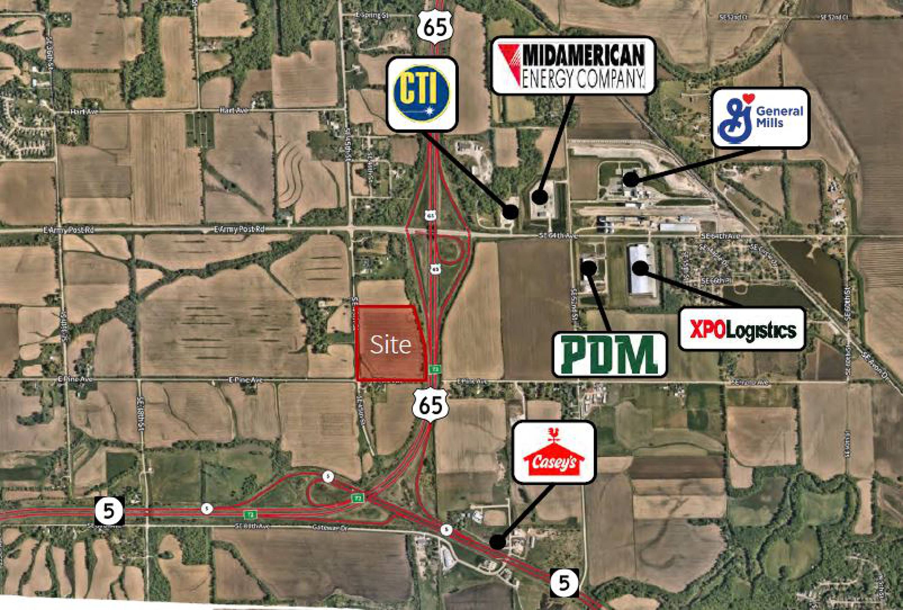 Up to 32.425 acres of land with highway visibility.