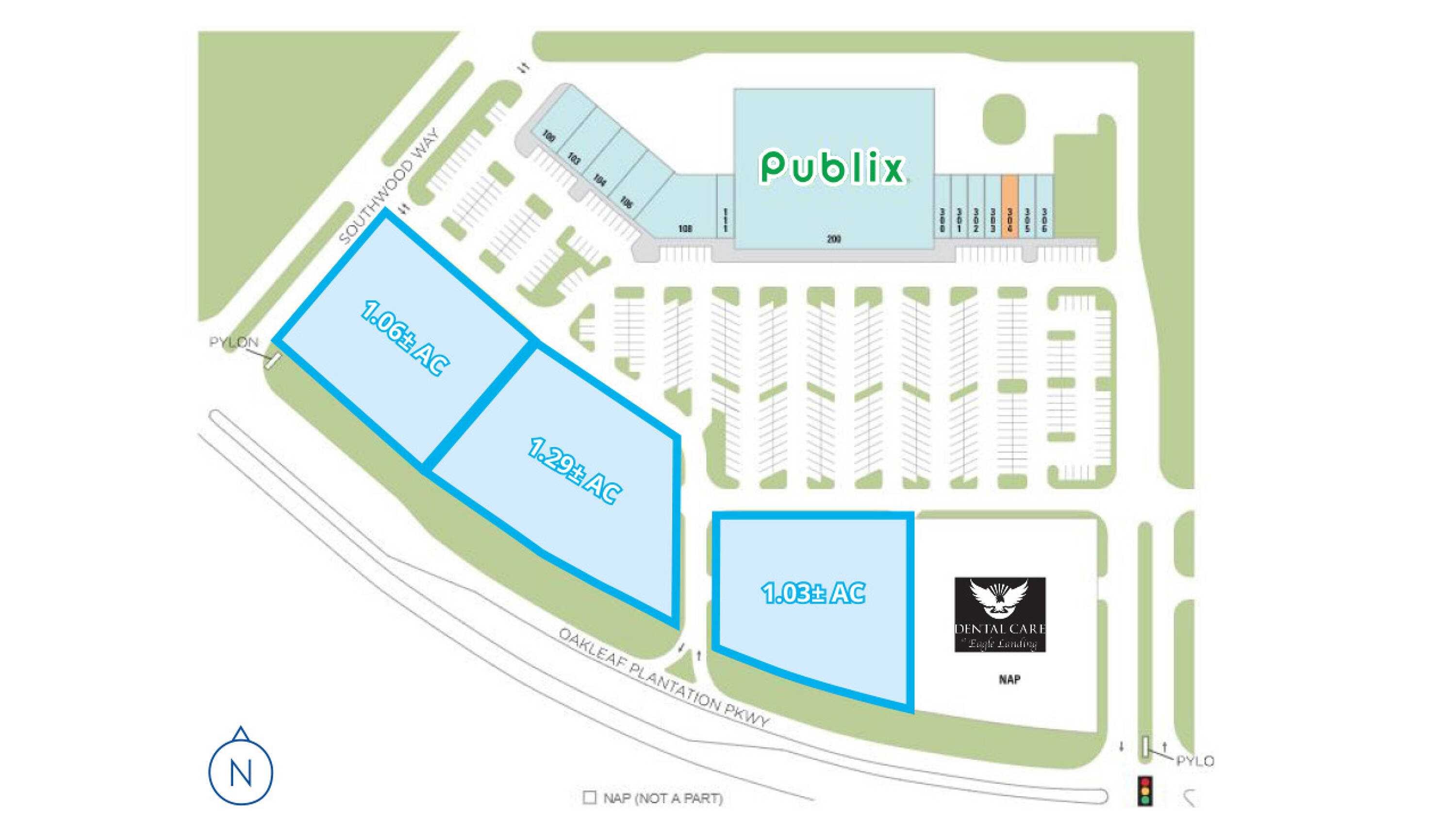 This property features: Available for ground lease; Publix outparcels; **1.03± - 2.35± AC available**