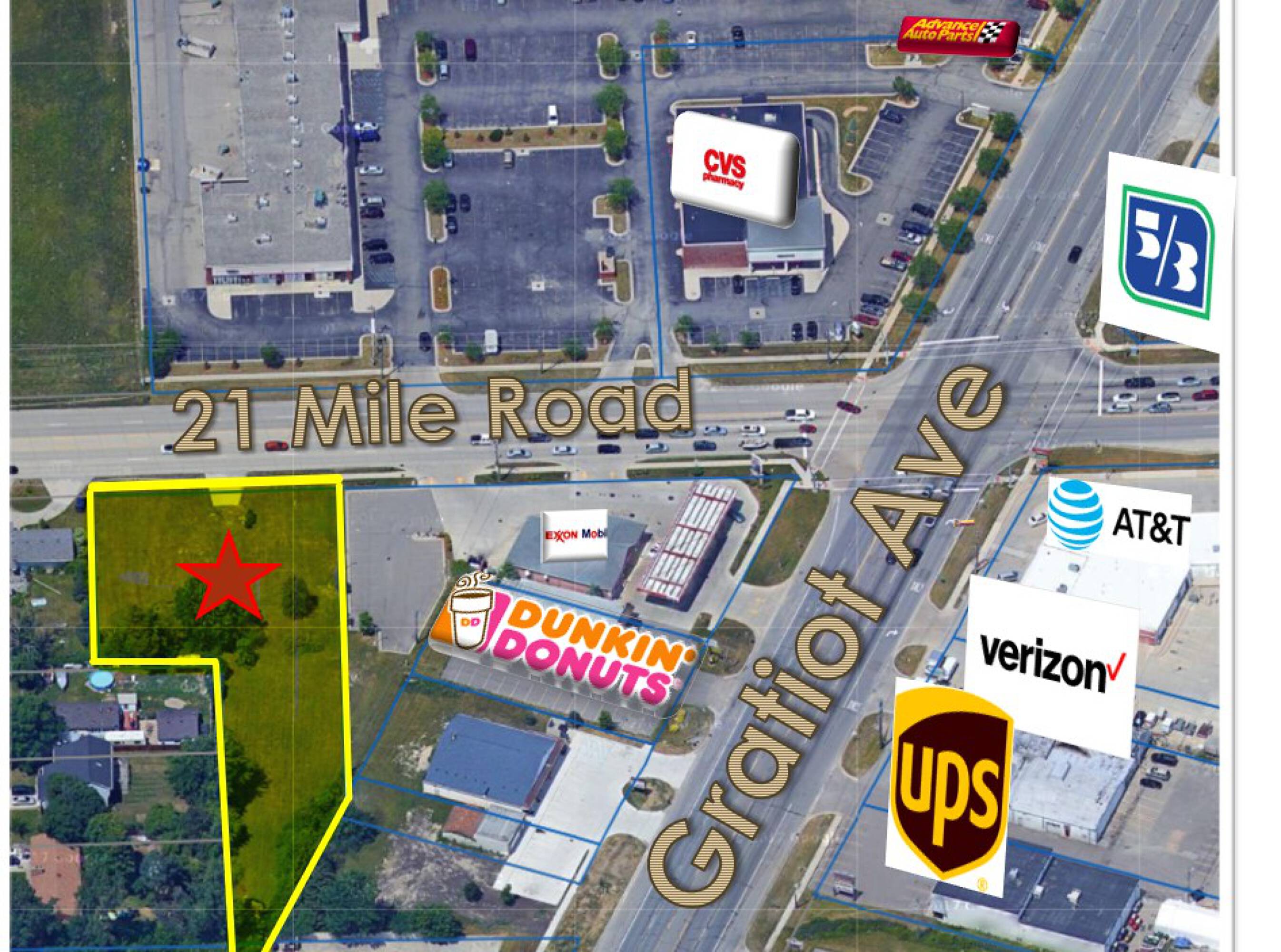 1.3 acres with frontage on 21 Mile Road.