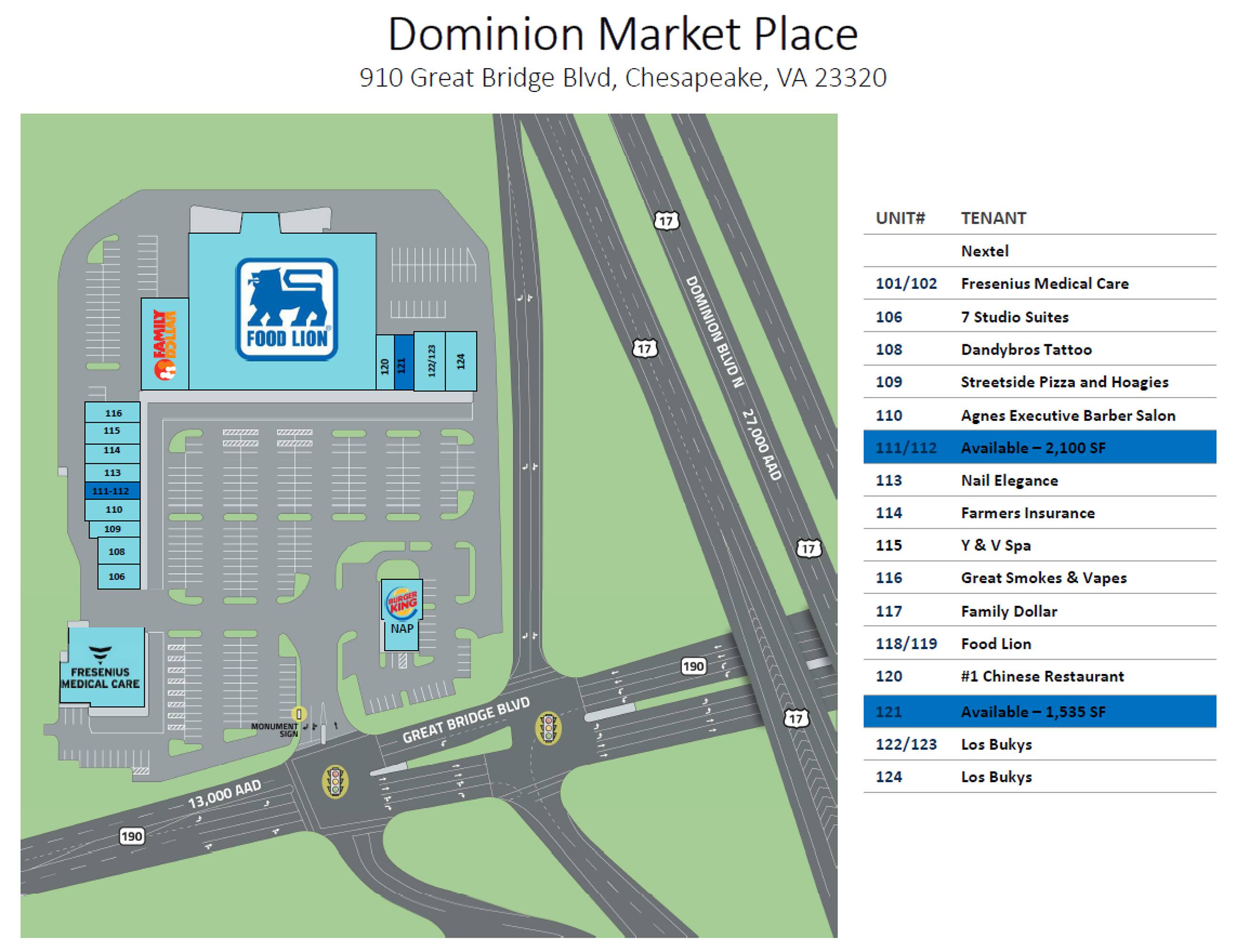 Premier commercial space for lease in Chesapeake, Virginia.