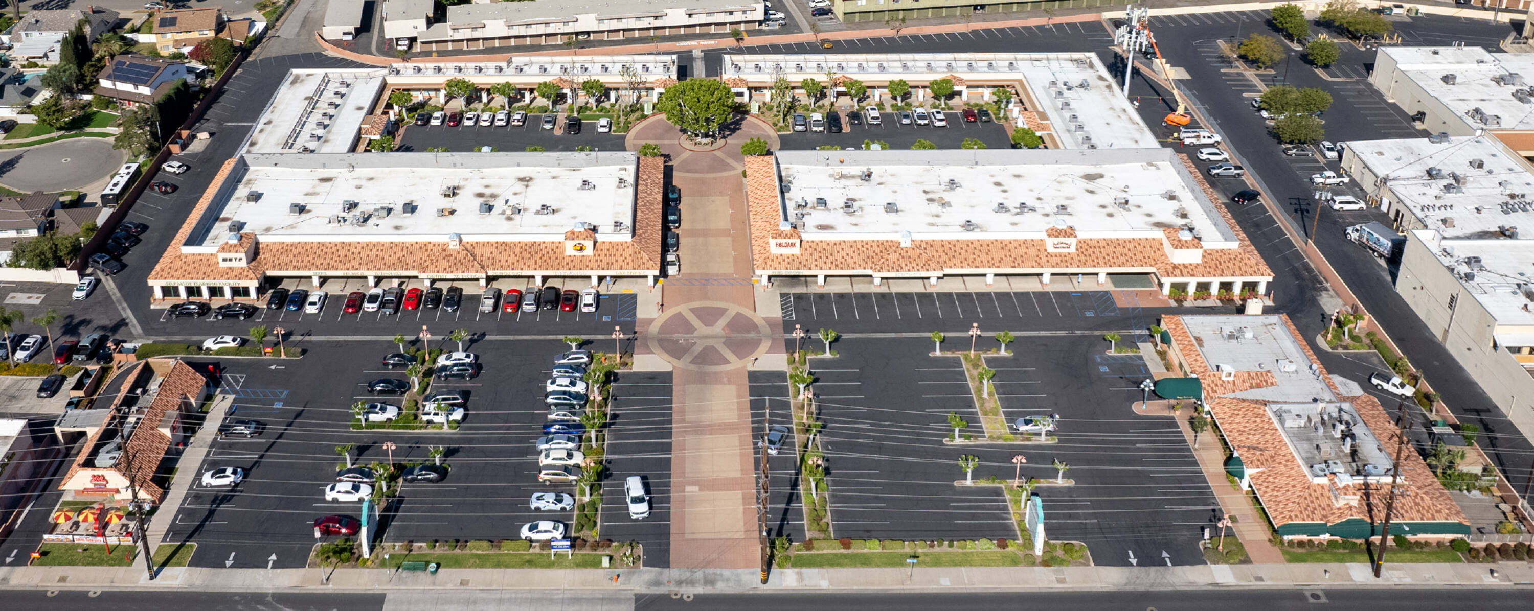 Retail and office spaces with high traffic and ample parking.