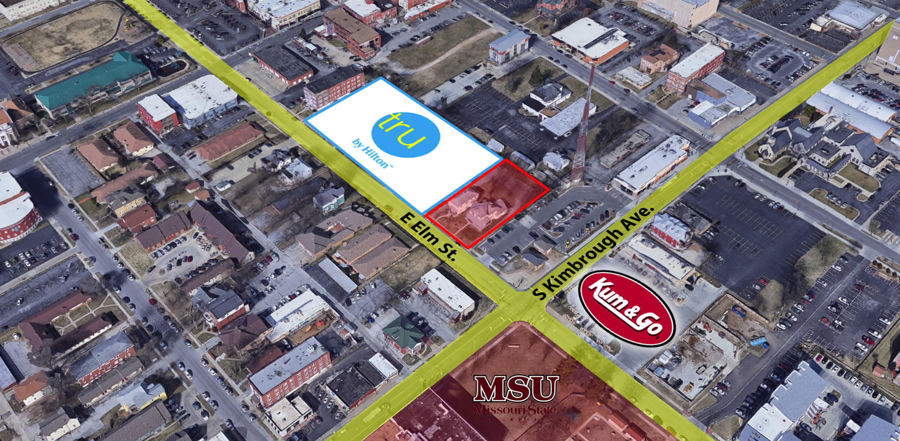 This property features: Excellent redevelopment potential in Springfield's Downtown area.; Prime location adjacent to the MSU campus.; High‑visibility frontage on E. Elm St.