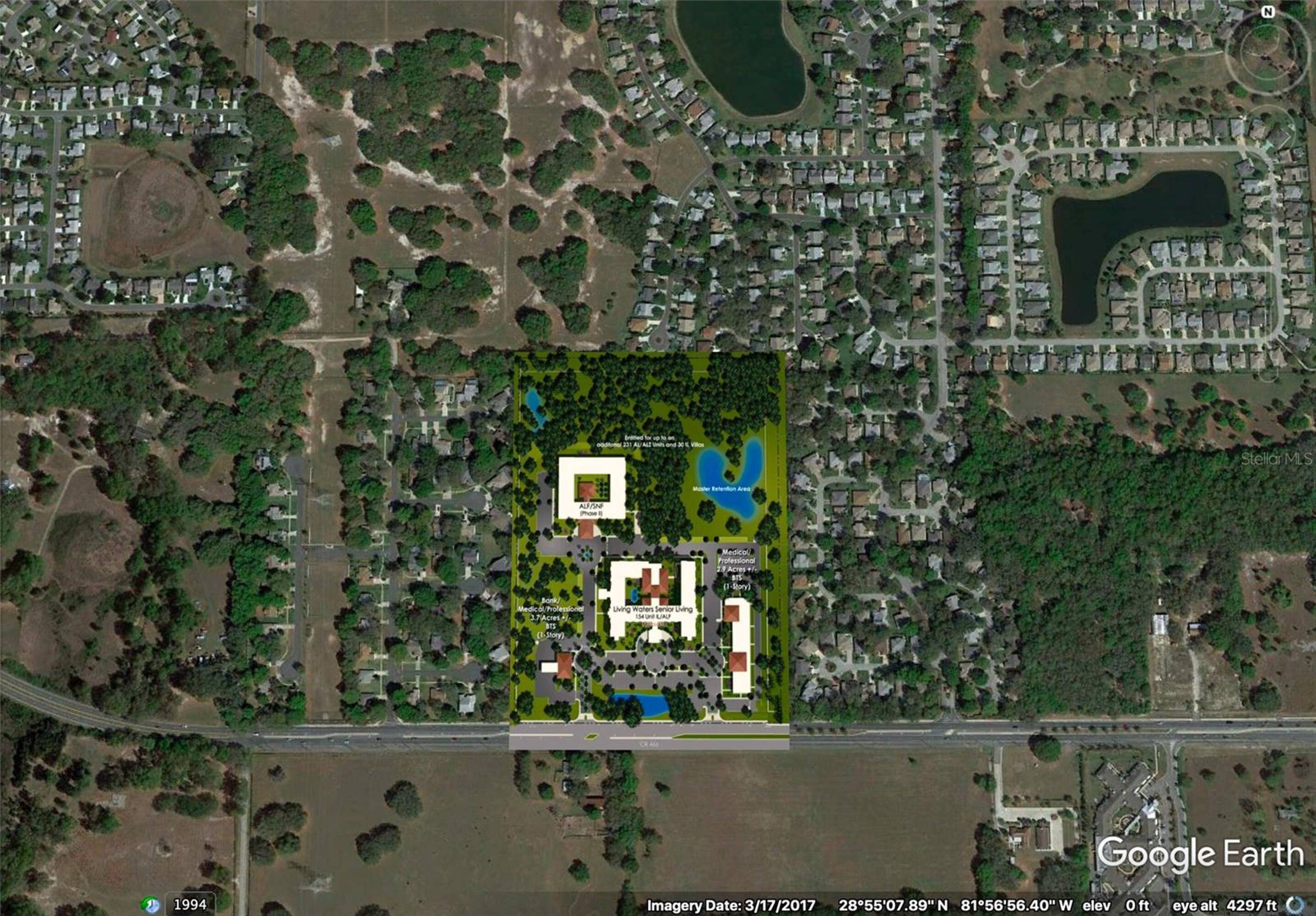 This property features: Prime location abutting The Villages on 3 sides.; Ready to go with entitlements and infrastructure in place.; Located on CR 466 with over 200' of road frontage and ingress/egress for both eastbound and westbound traffic.