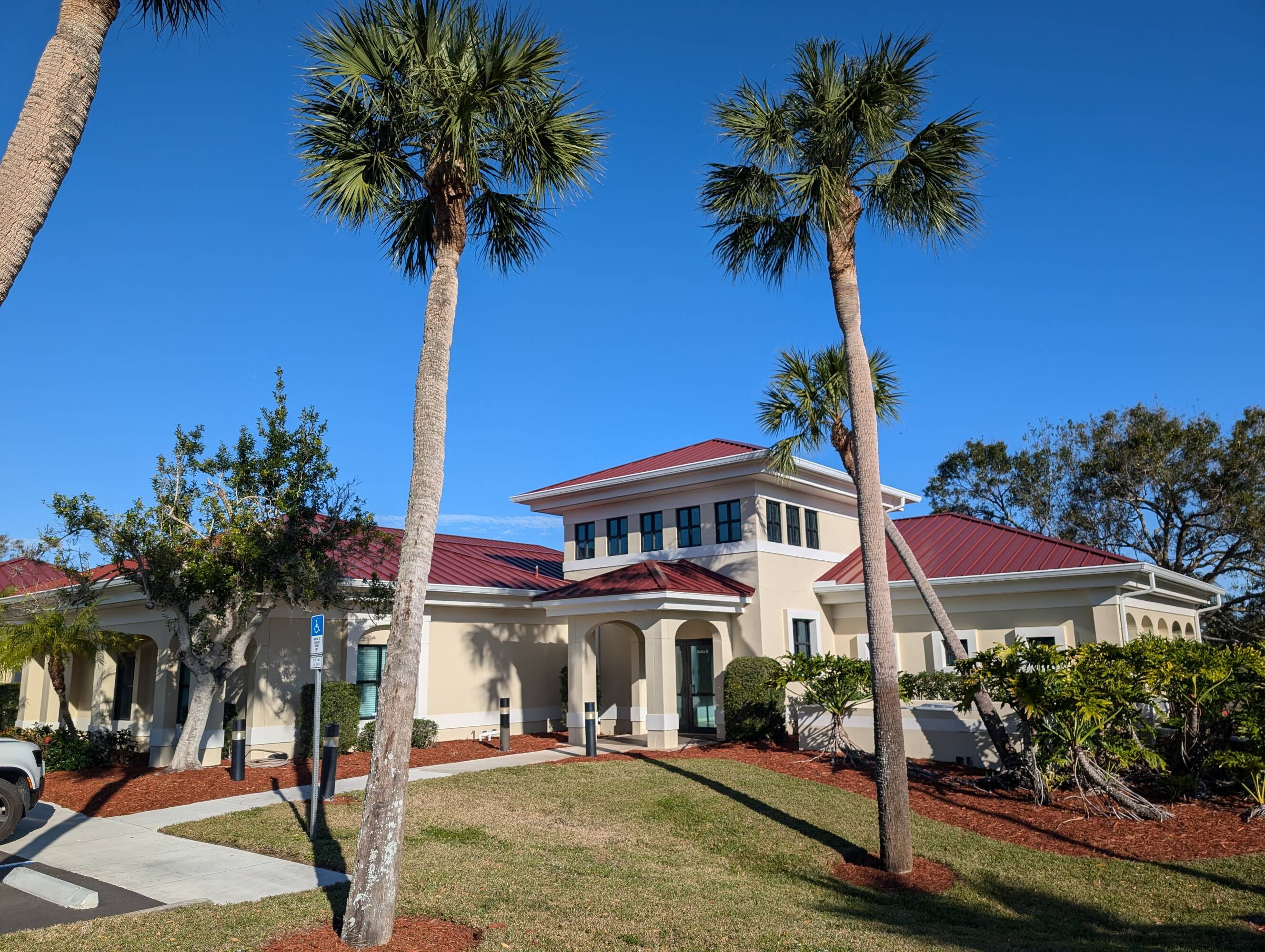 This ground floor office space features numerous windows and high ceilings. The unit layout includes a large conference room, break room, male and female restrooms, an administrative workspace accommodating 3-4 workstations, a bullpen accommodating 5-8 workstations, and 4 executive offices. The available suite, Suite B, offers 4,990 square feet. The zoning is (CN) Neighborhood Commercial District. Utilities include county water and FPL. There is on-site parking for approximately 63 vehicles. Traffic counts indicate 29,653 vehicles per day in 2023.
