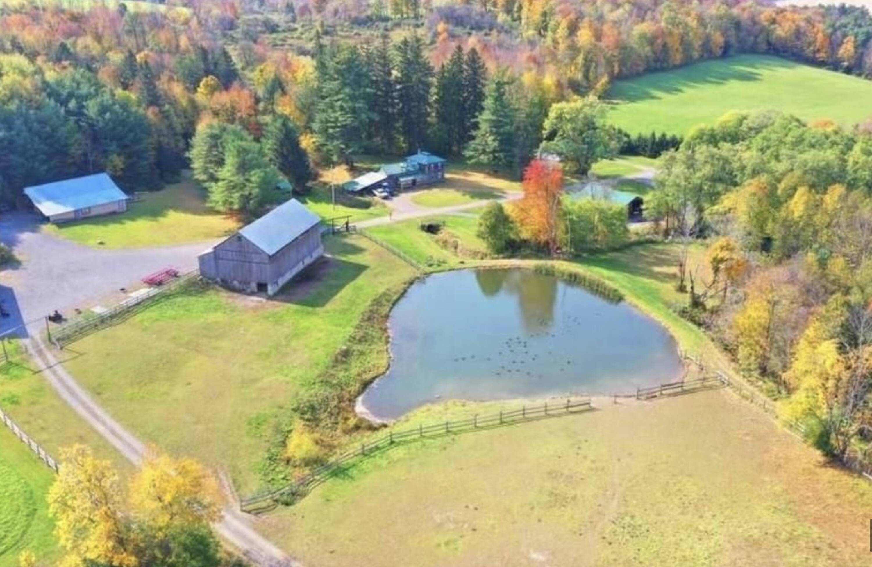 This 680-acre ranch in West Winfield, NY, offers seclusion and tranquility. The property features diverse topography, including fertile agricultural fields, river bottom, hardwood ridges, and rolling hills. It also includes river frontage, stocked ponds, and streams. The ranch has over two miles of road frontage on four different roads, including commercial frontage on State Route 20. A long, gated driveway leads to the heart of the ranch. The property includes an original, renovated farmhouse with lodge-style ambiance, as well as a second guest or caretaker's home. There are six wells on the property and security systems in place. Multiple barns are available for livestock, equipment, and hay. The pasture is fenced with eight-foot-tall game fencing. Currently a working livestock ranch and hay farm, it could be used for cattle, horses, sheep, goats, alpacas, or exotics. The pastures have live water with multiple ponds, springs, and creeks. The property has fertile soil for growing crops and abundant wildlife, including whitetail deer, coyotes, bobcats, fox, black bear, raccoons, fisher, bald eagles, turkey, and waterfowl. There is Unadilla River frontage, as well as ponds, creeks, and springs. The property also features wild apple, pear, and cherry trees, as well as elderberry bushes and wild grapes. A one-acre garden is under high fence. There is a wide variety of hardwoods and softwoods, and a sawmill is on the property. Located twenty miles northwest of Cooperstown, NY, the ranch is suited for recreation, including wildlife viewing, hunting, fishing, hiking, horseback riding, cross-country skiing, dirt biking, mountain biking, snowmobiling, and 4-wheeling. The ranch has over 35 miles of trails. The property has income potential and could be used as a country vacation business, hunting outfitter business, or for crop production and livestock. It could also be used as a winery or brewery, hemp farm, or for camping or glamping. All mineral, water, wind, and solar rights are intact.