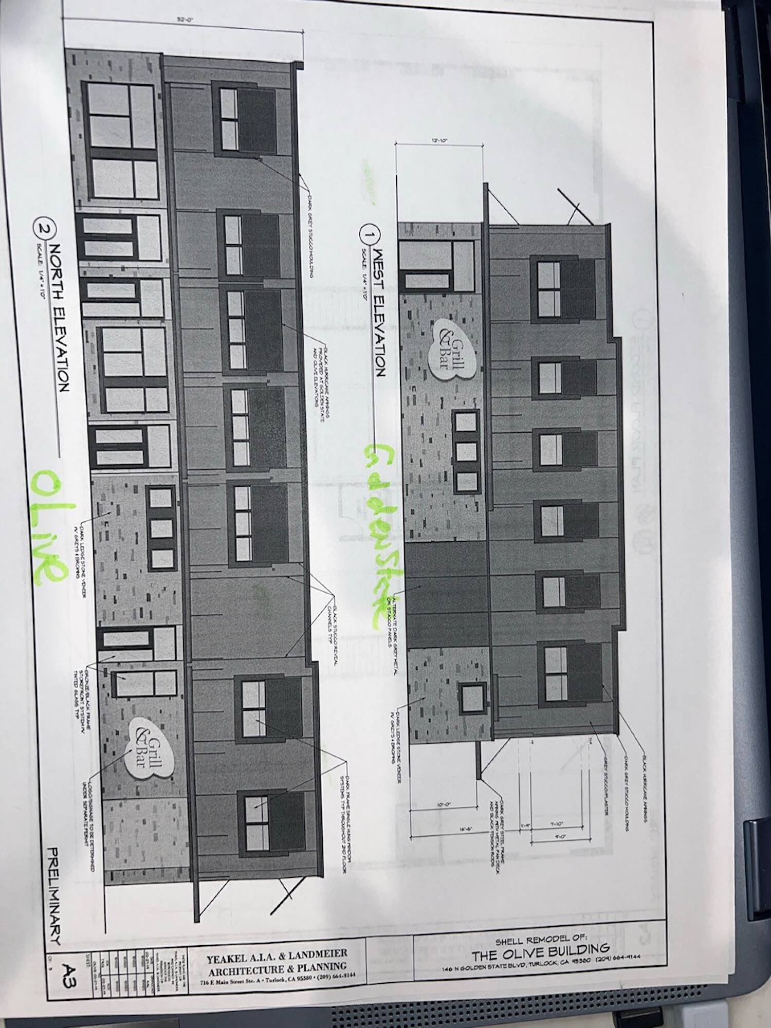 Mixed-use building in downtown Turlock with restaurant and office potential.