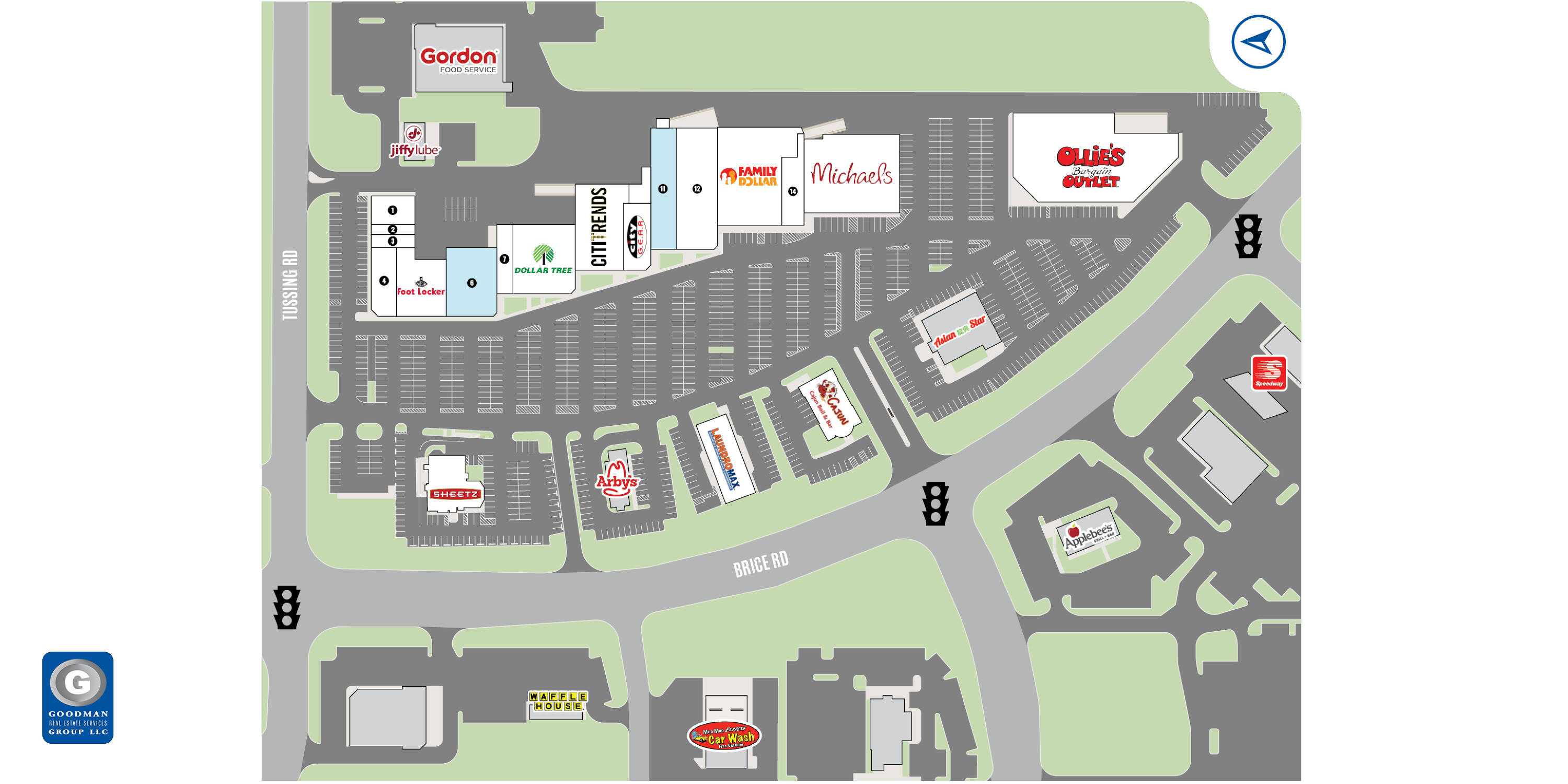 This property features: Located in a 145,000 SF shopping center with established tenants.; High traffic location at the intersection of Brice Road and Tussing Road.; Excellent access to Interstate 70.