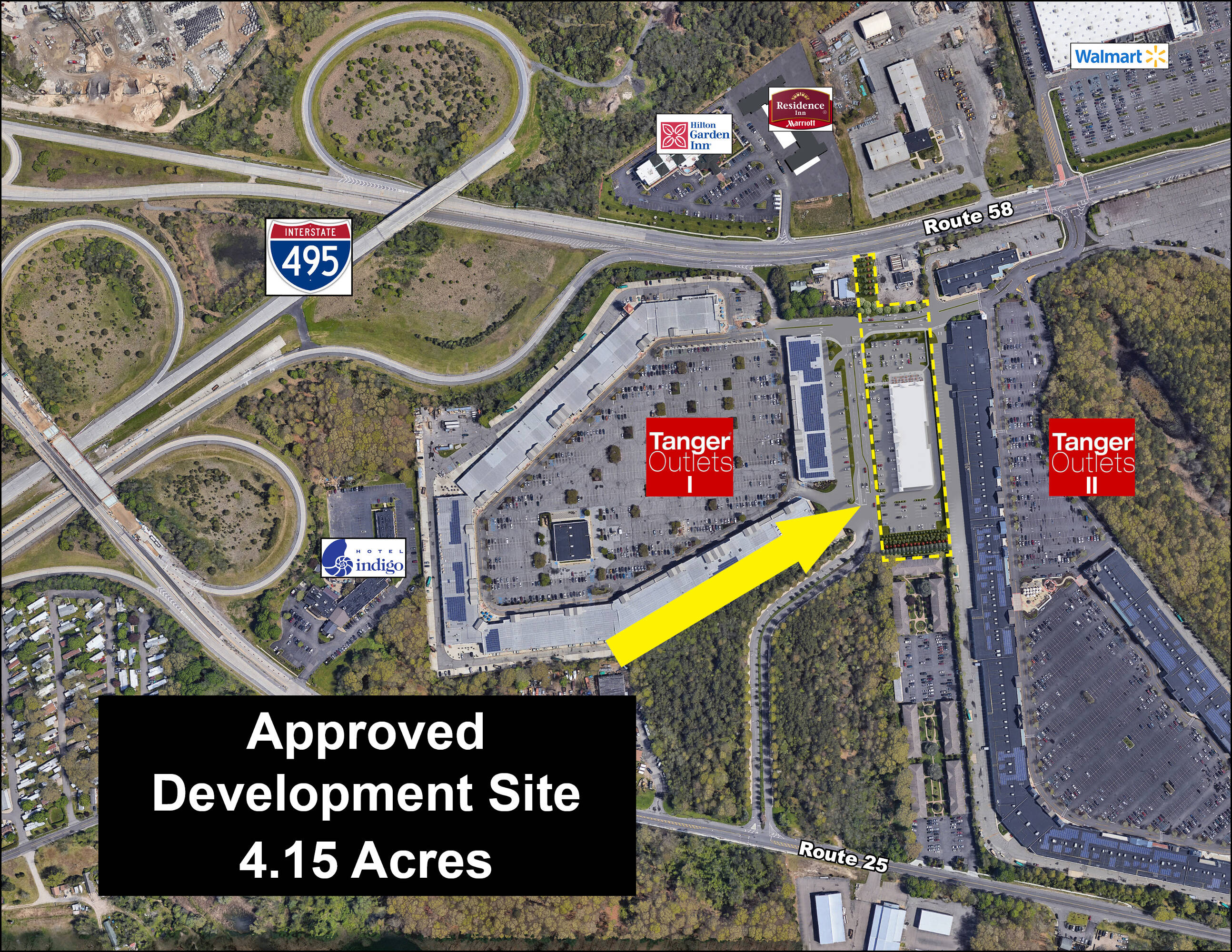 4.15 acres on Tanger Mall Drive, restaurant-permitted location.