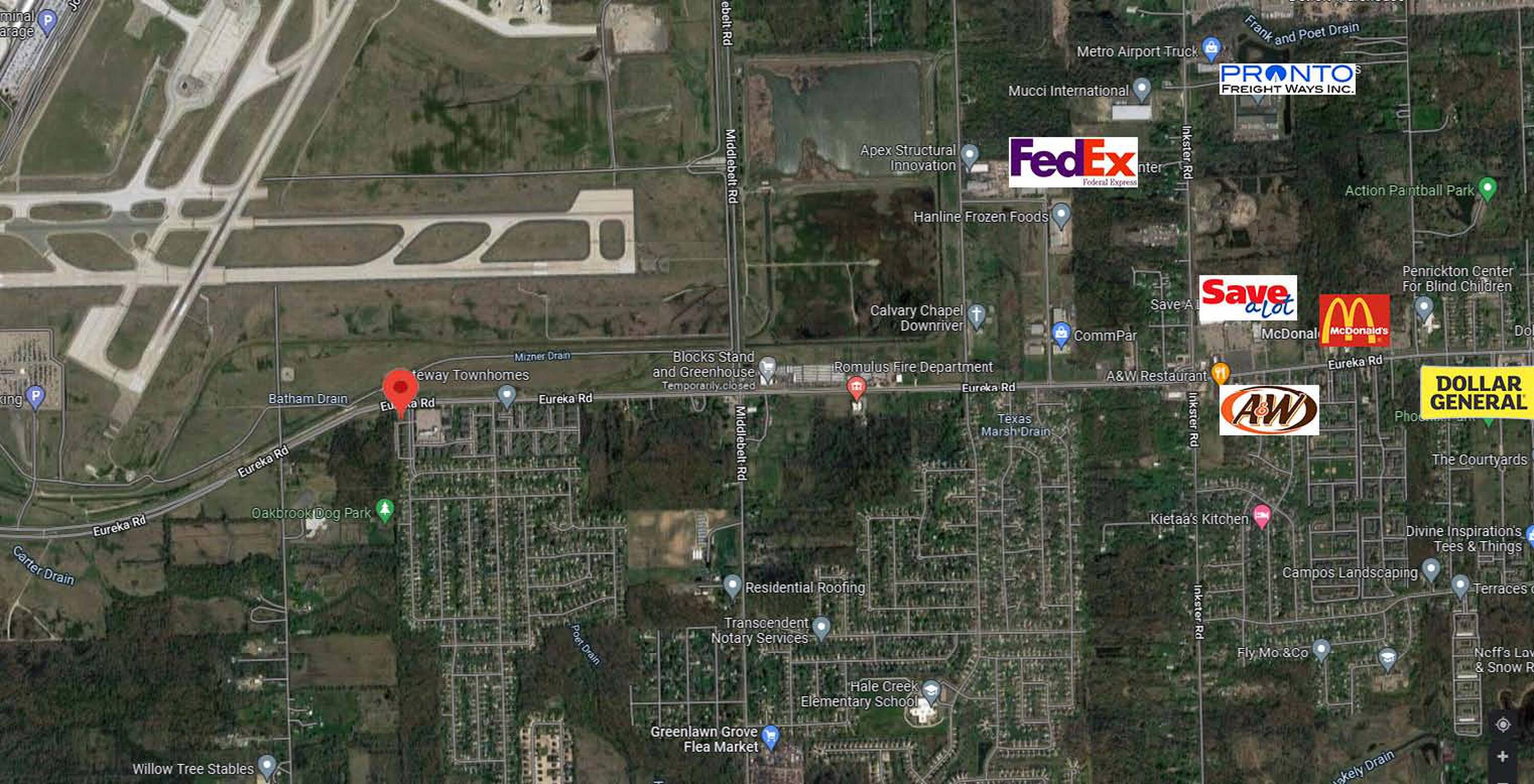 Commercial land with high visibility near Detroit Metro Airport.