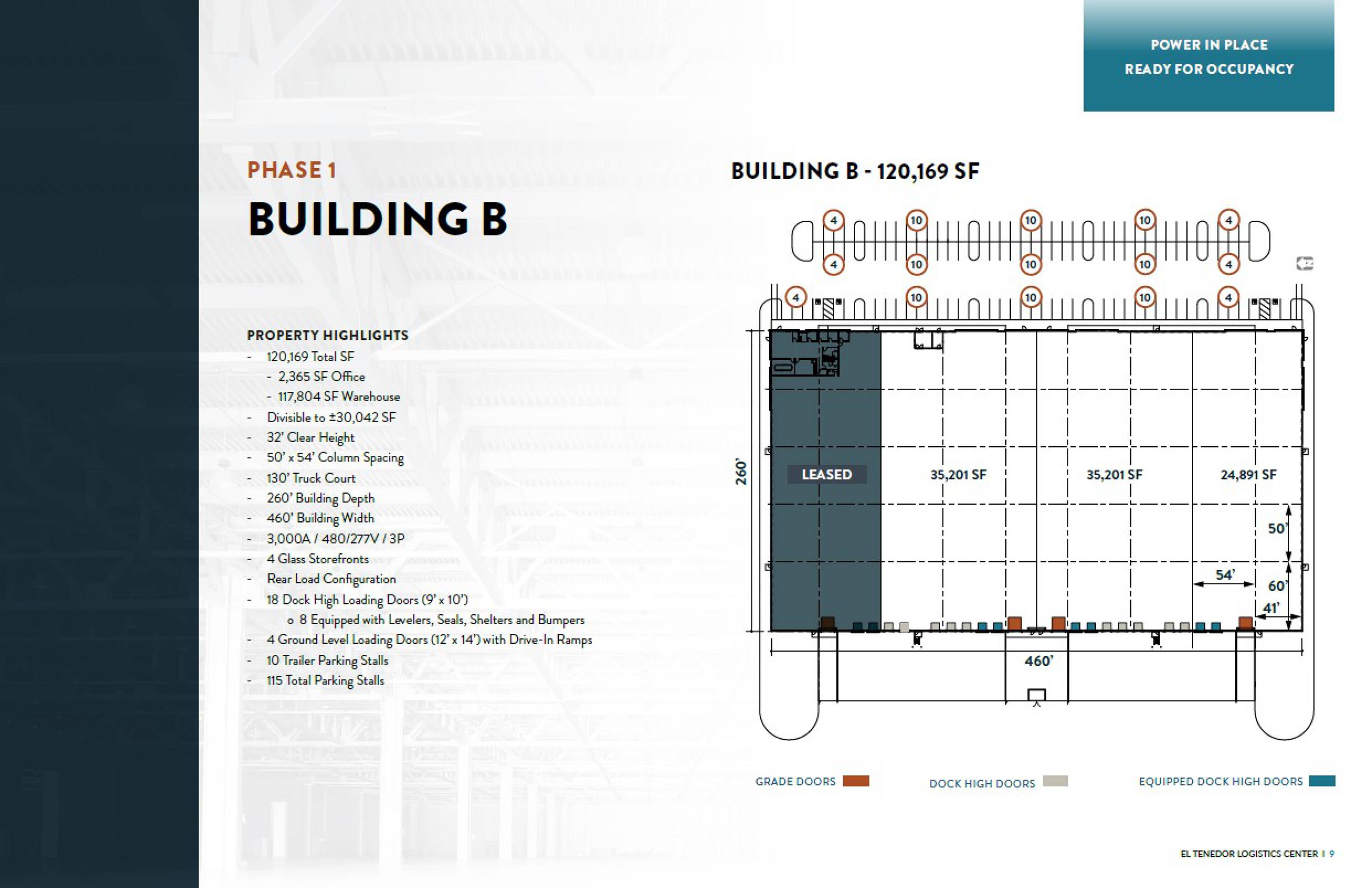 This property features: New, Class A industrial space built in 2024.; Located in the El Tenedor Logistics Center, a premier industrial park.; Ideal for owner‑users seeking light manufacturing and logistics operations.