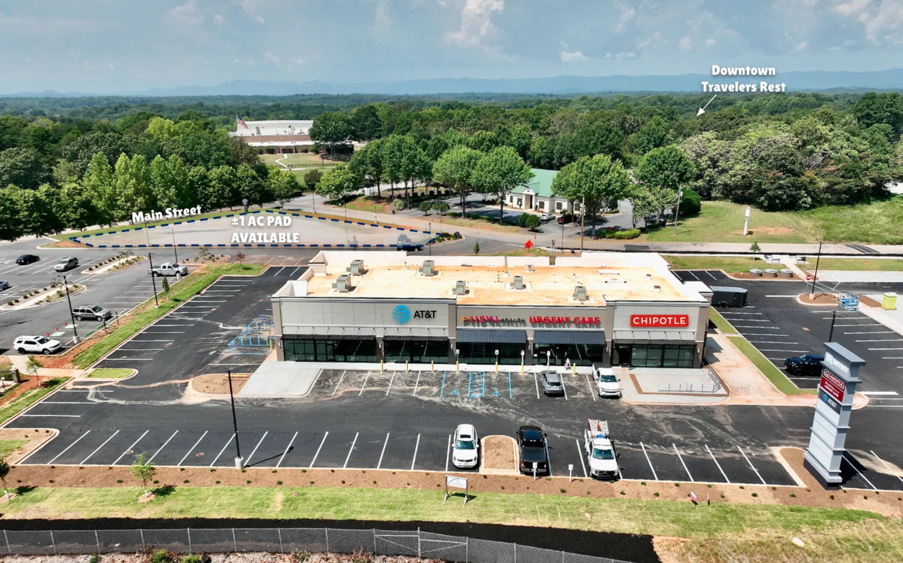 Class A retail space with highway visibility in Travelers Rest.