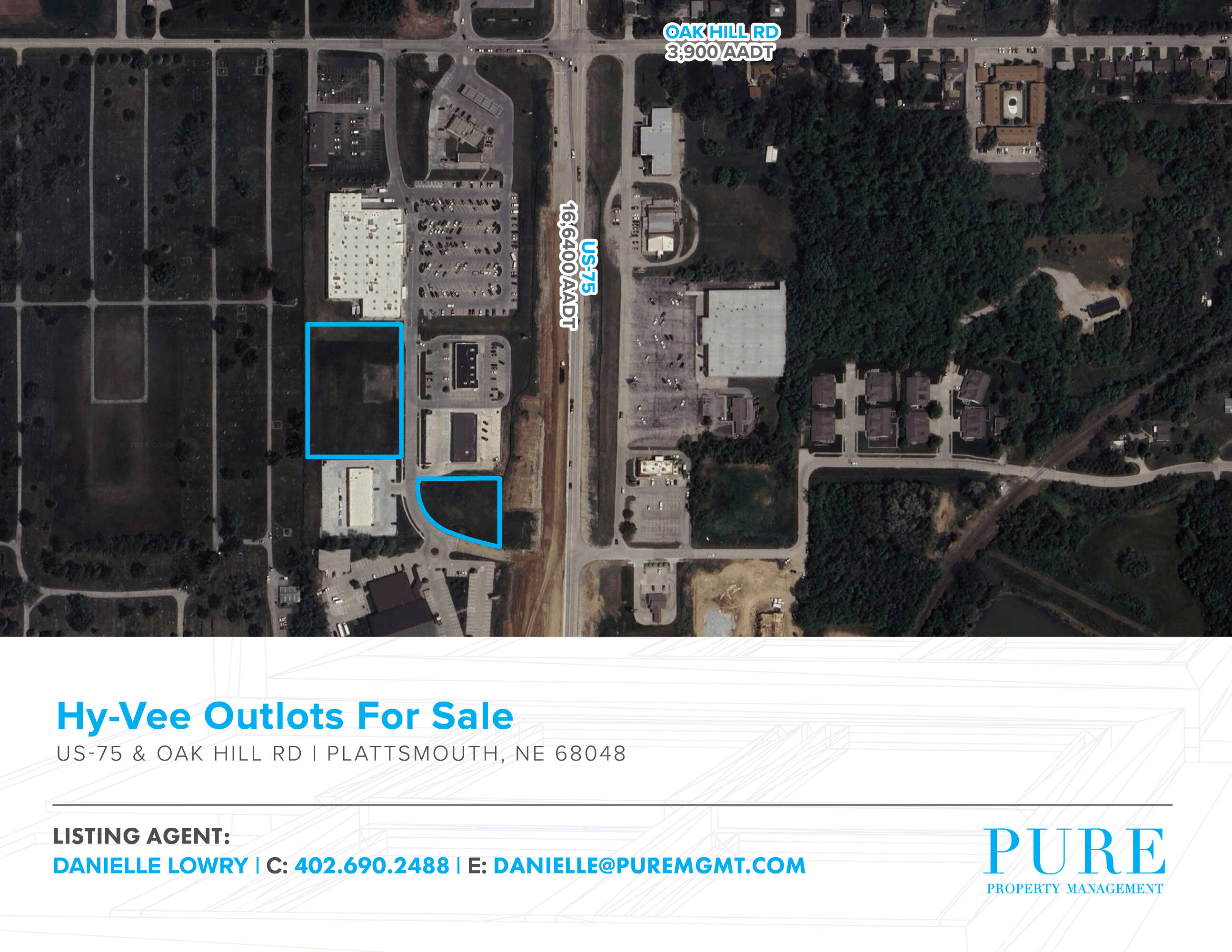 These commercial lots are anchored by Hy-Vee and front HWY 75. Build-to-suit options are available.