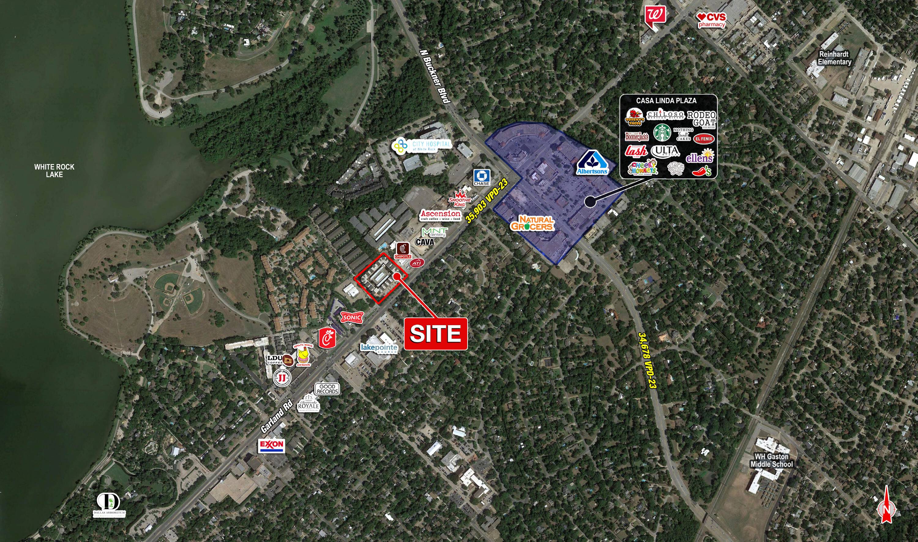 Retail and restaurant spaces in Casa Linda neighborhood near White Rock.