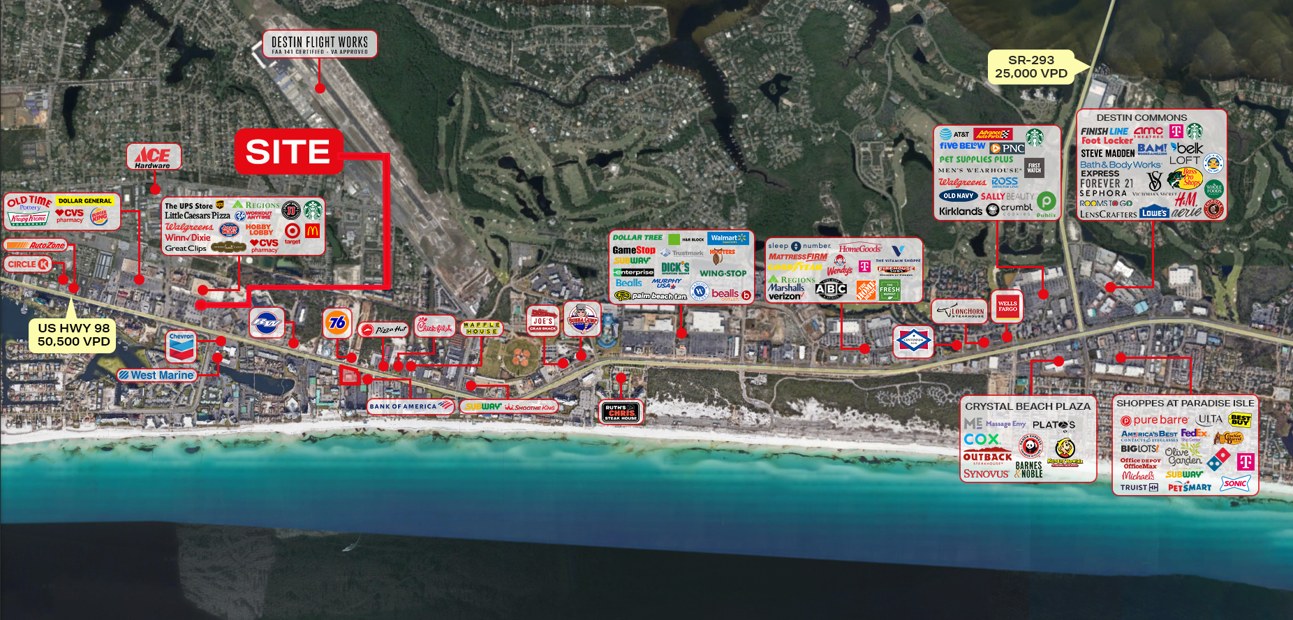 - Crystal Beach Plaza — 34906 Emerald Coast Pkwy, Destin, FL 32541