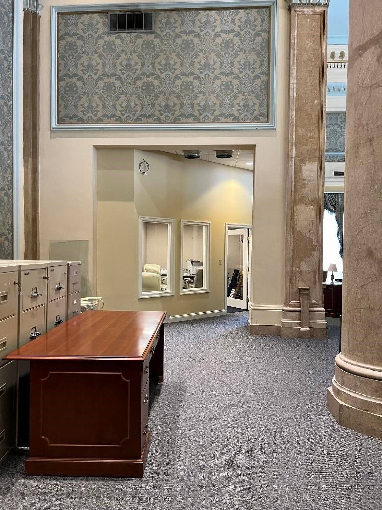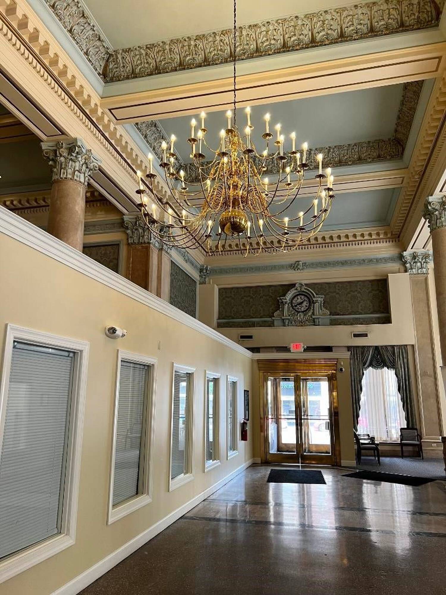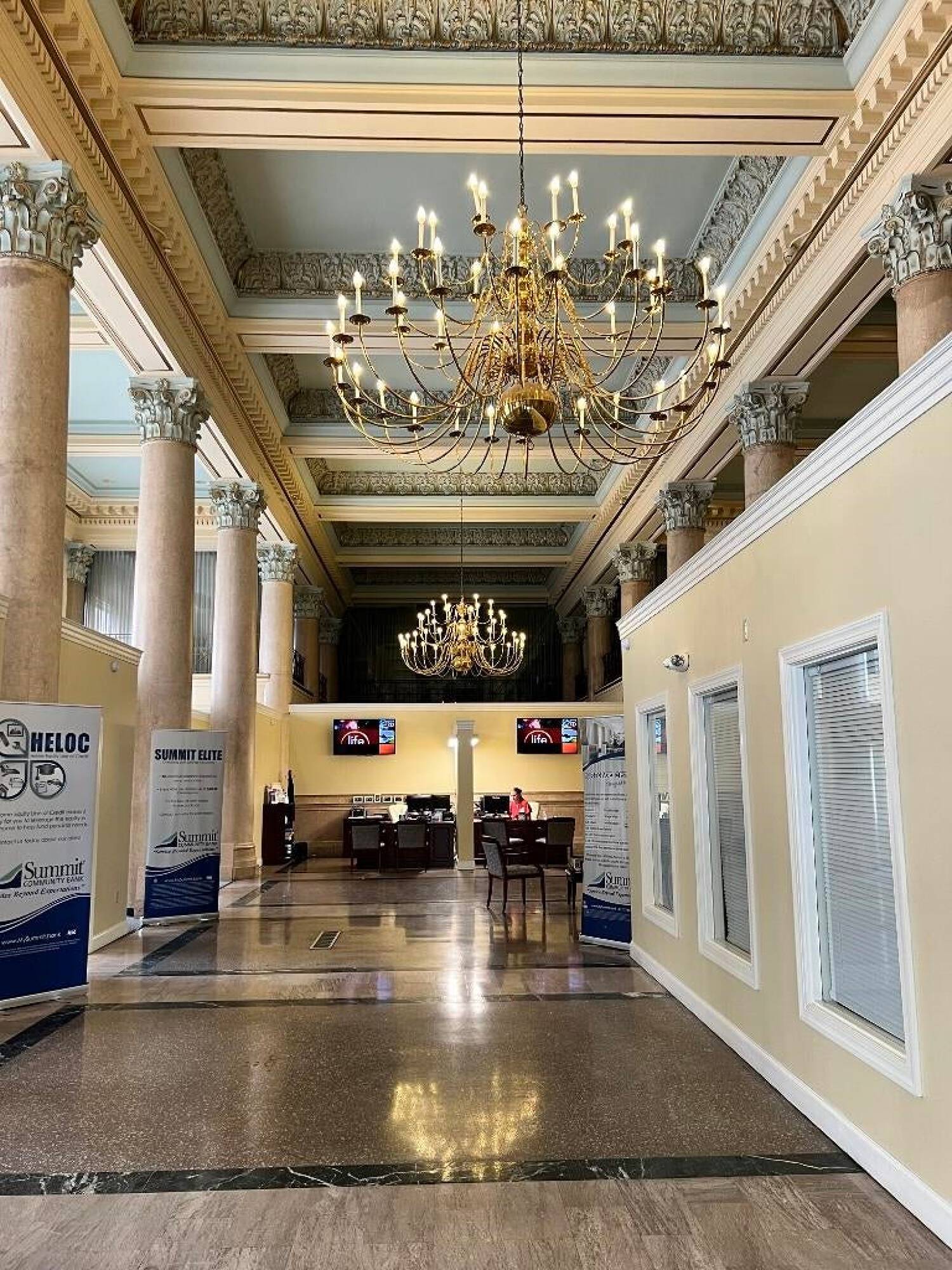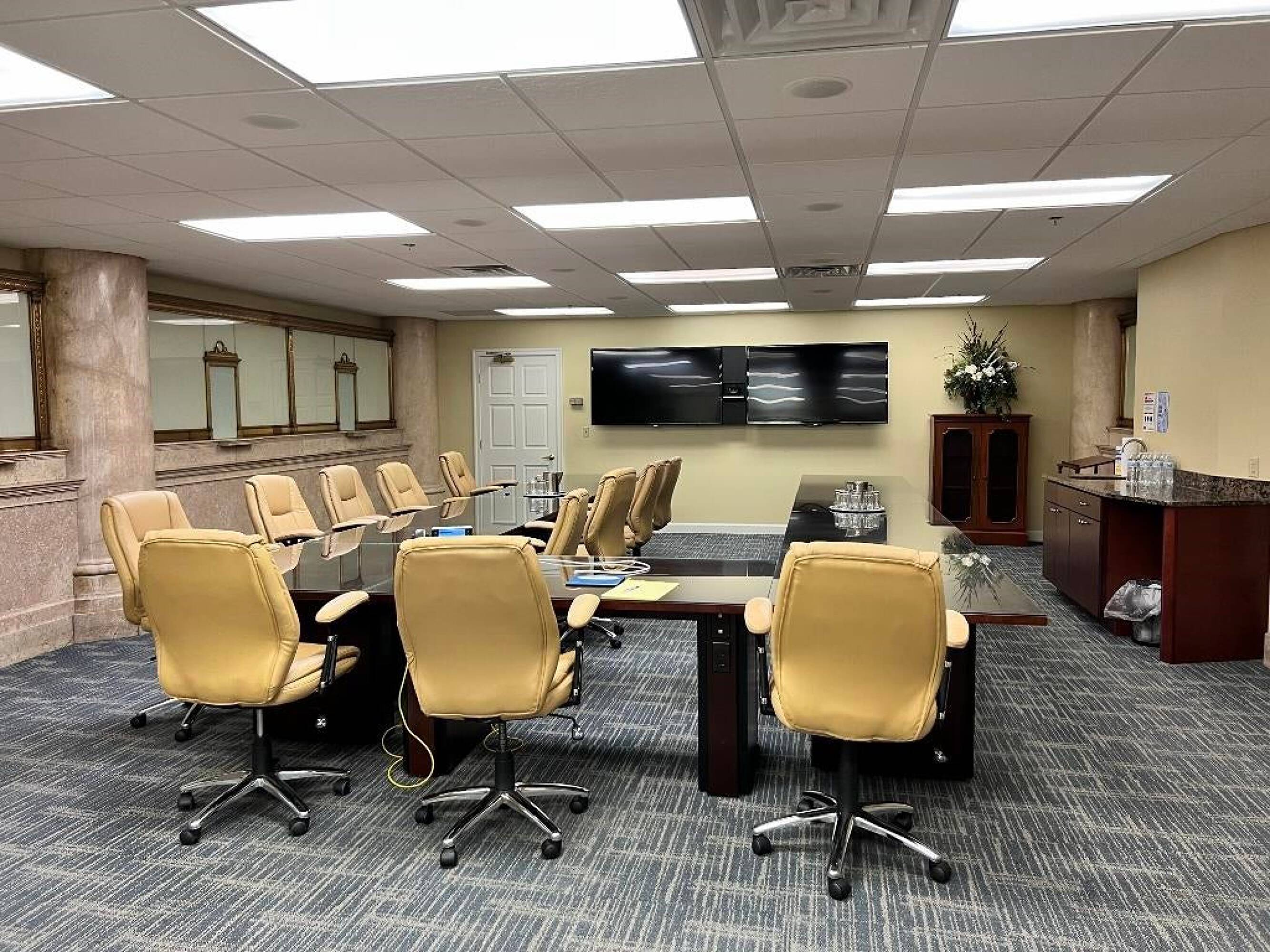 Landmark property with offices, conference rooms, and marble floors.