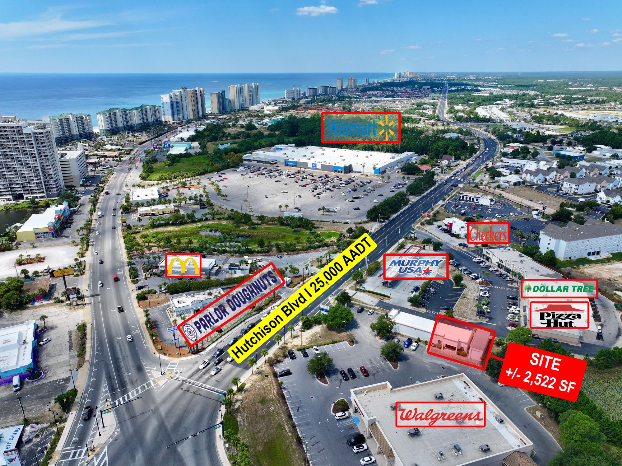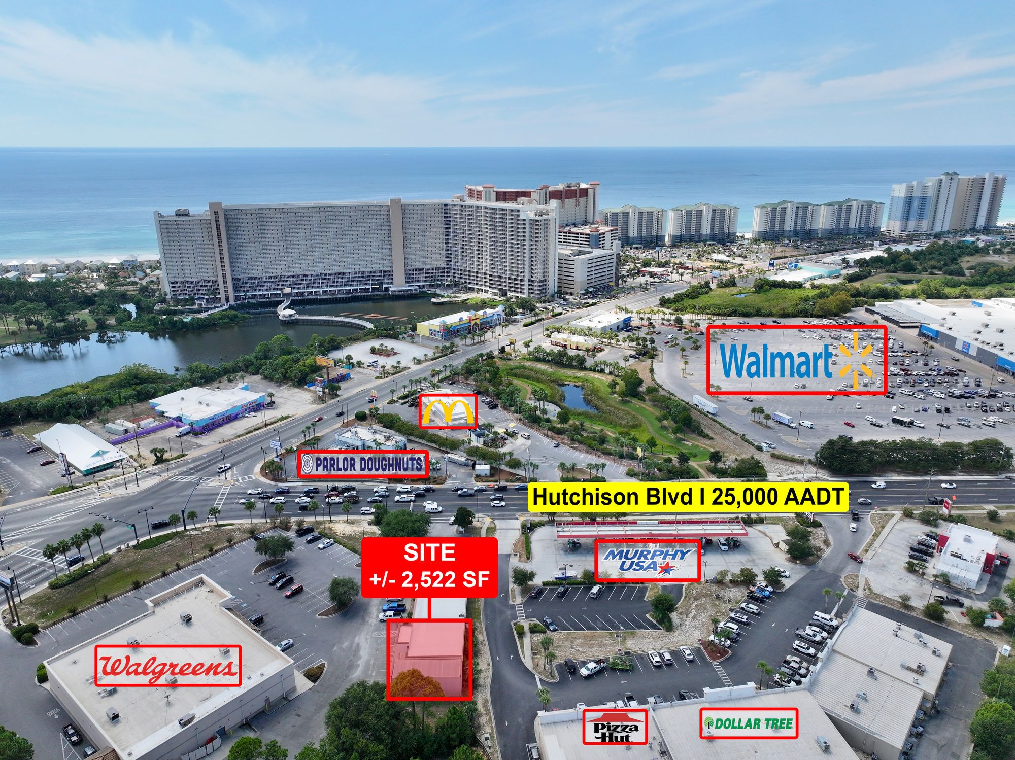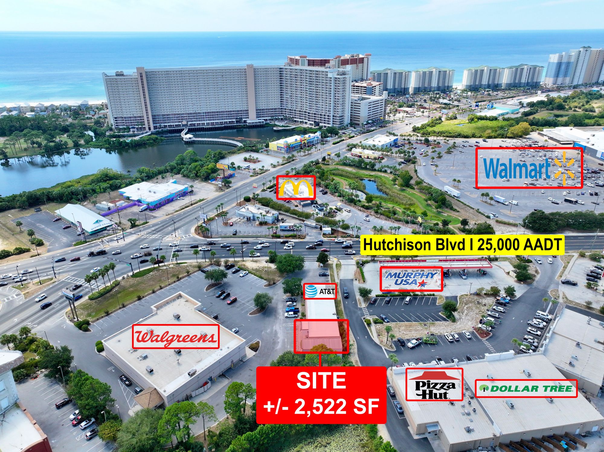 Retail and office spaces with ample parking in Panama City Beach.