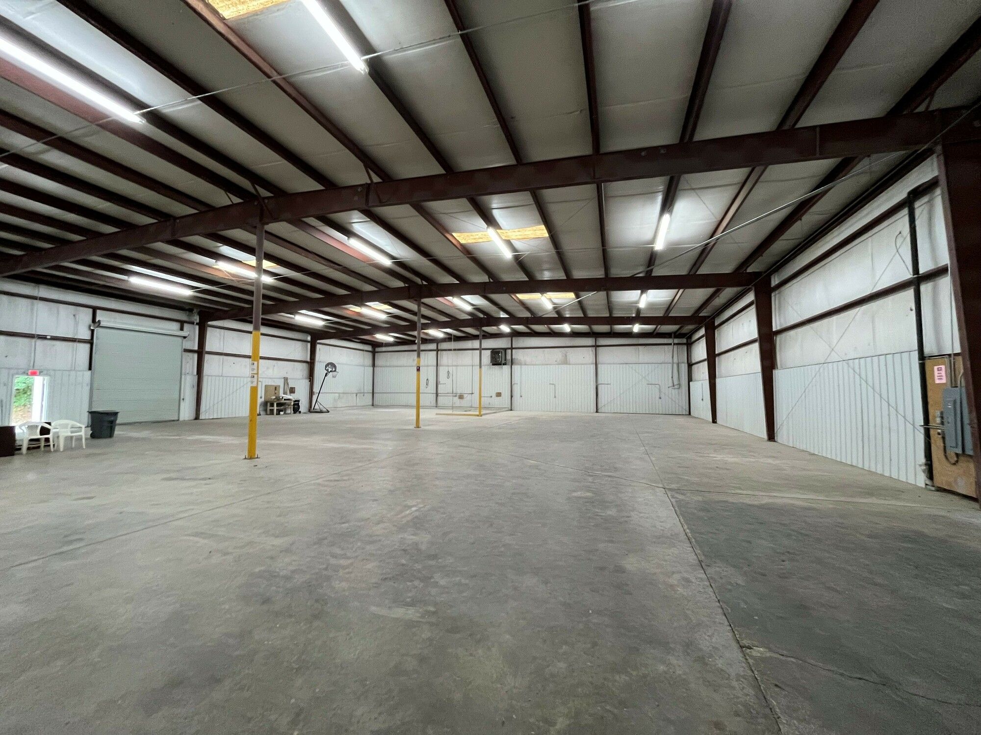 Industrial warehouse with office, dock, and drive-in doors.
