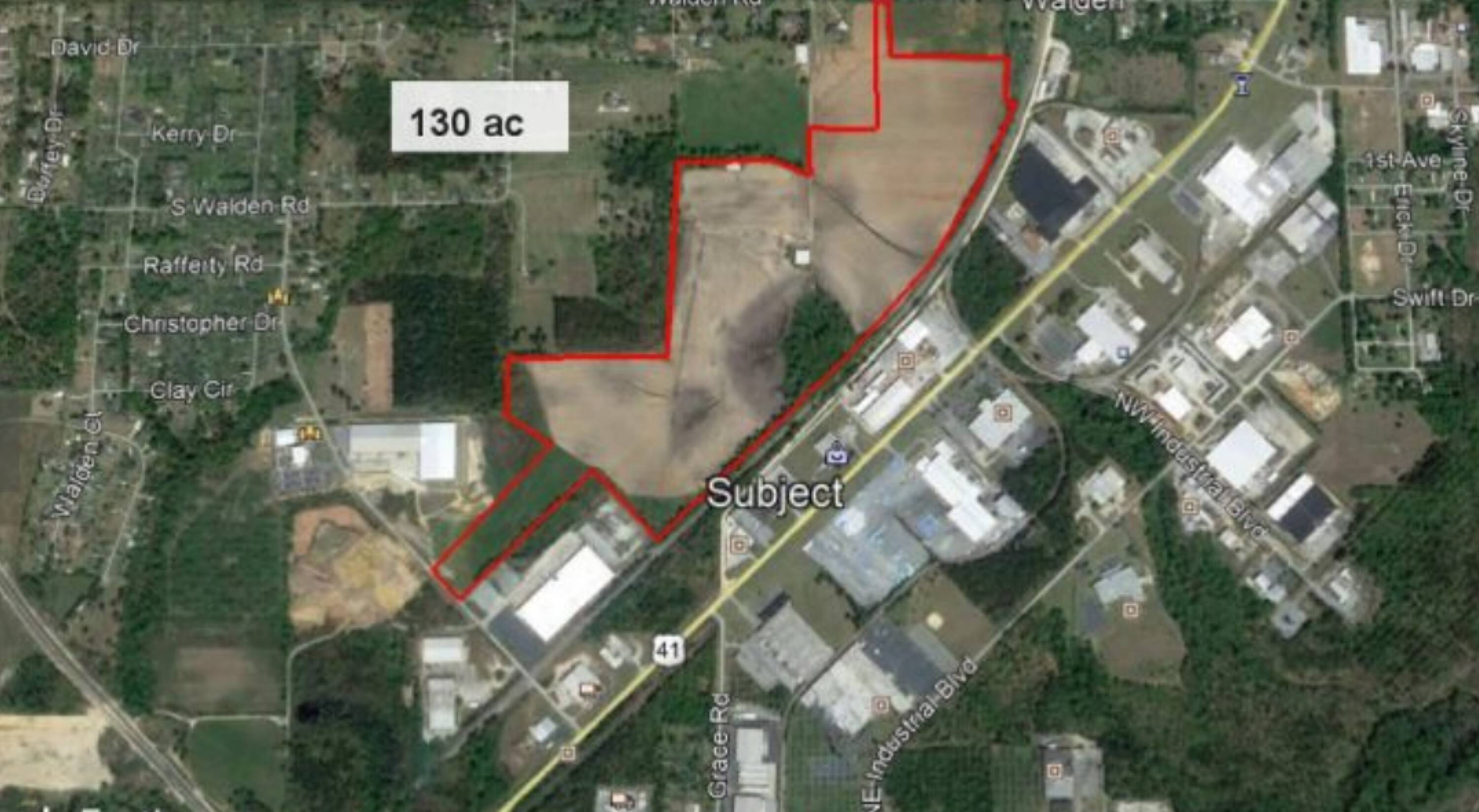 Industrial land with utilities, rail frontage, and highway access.