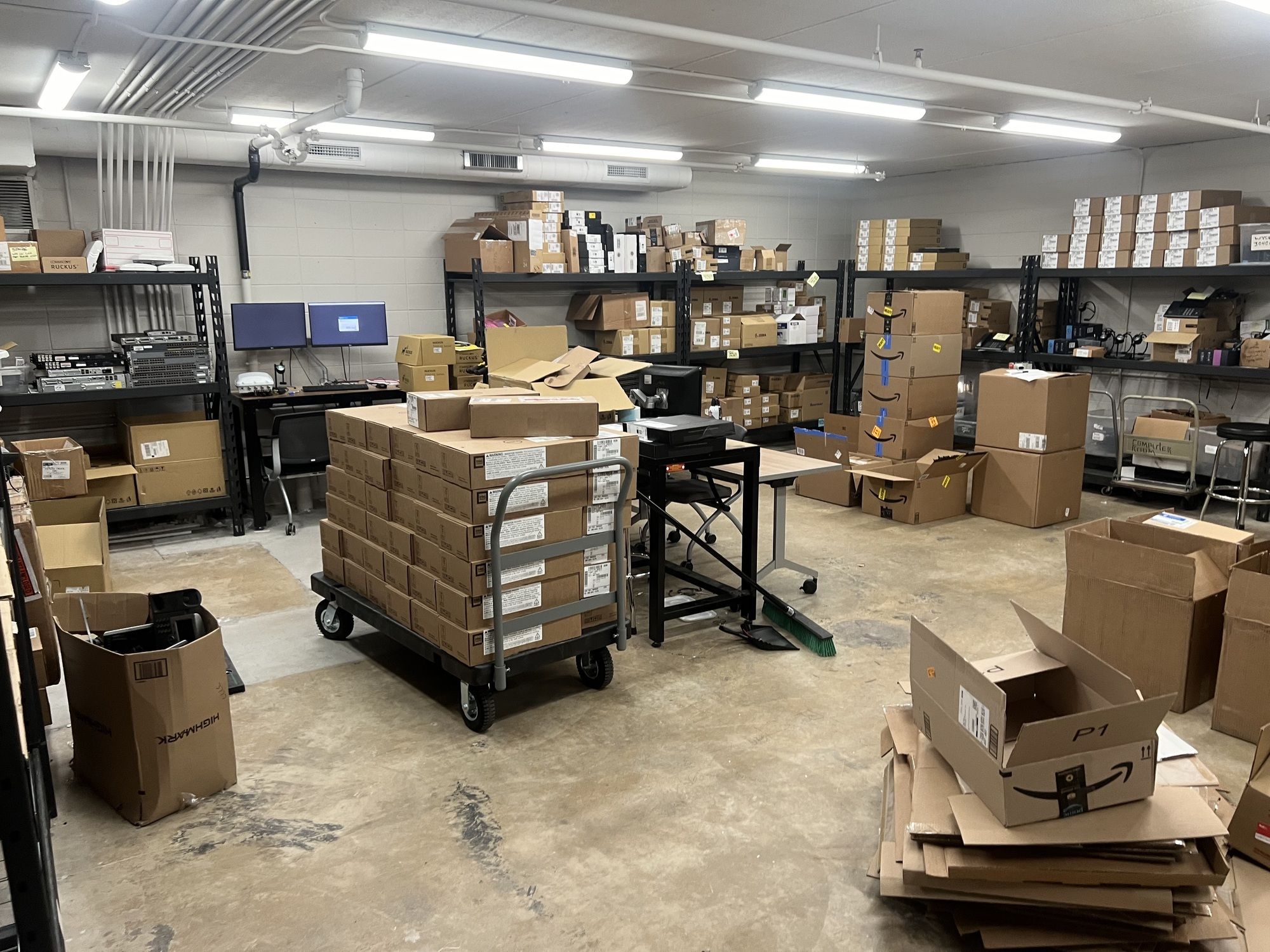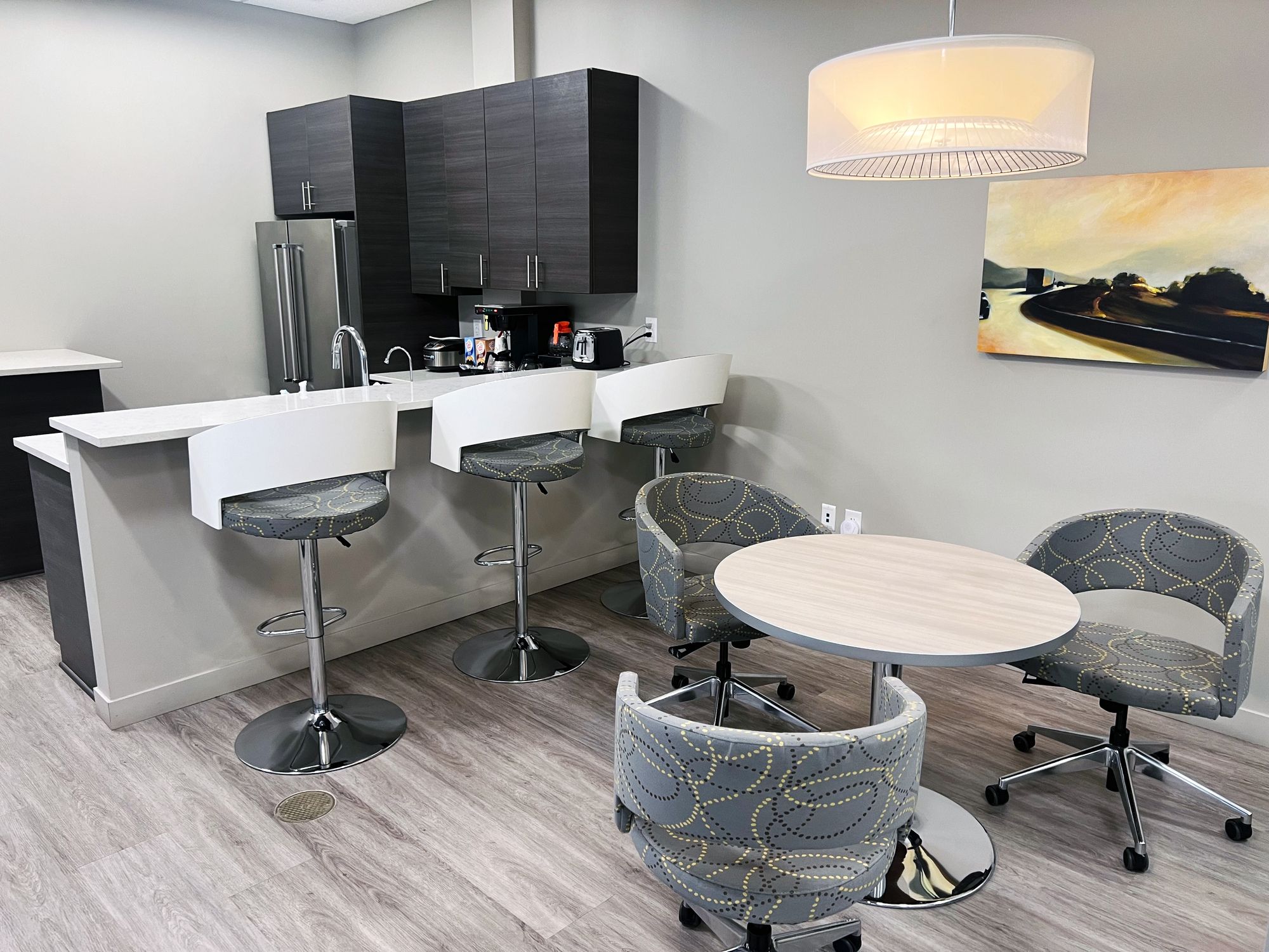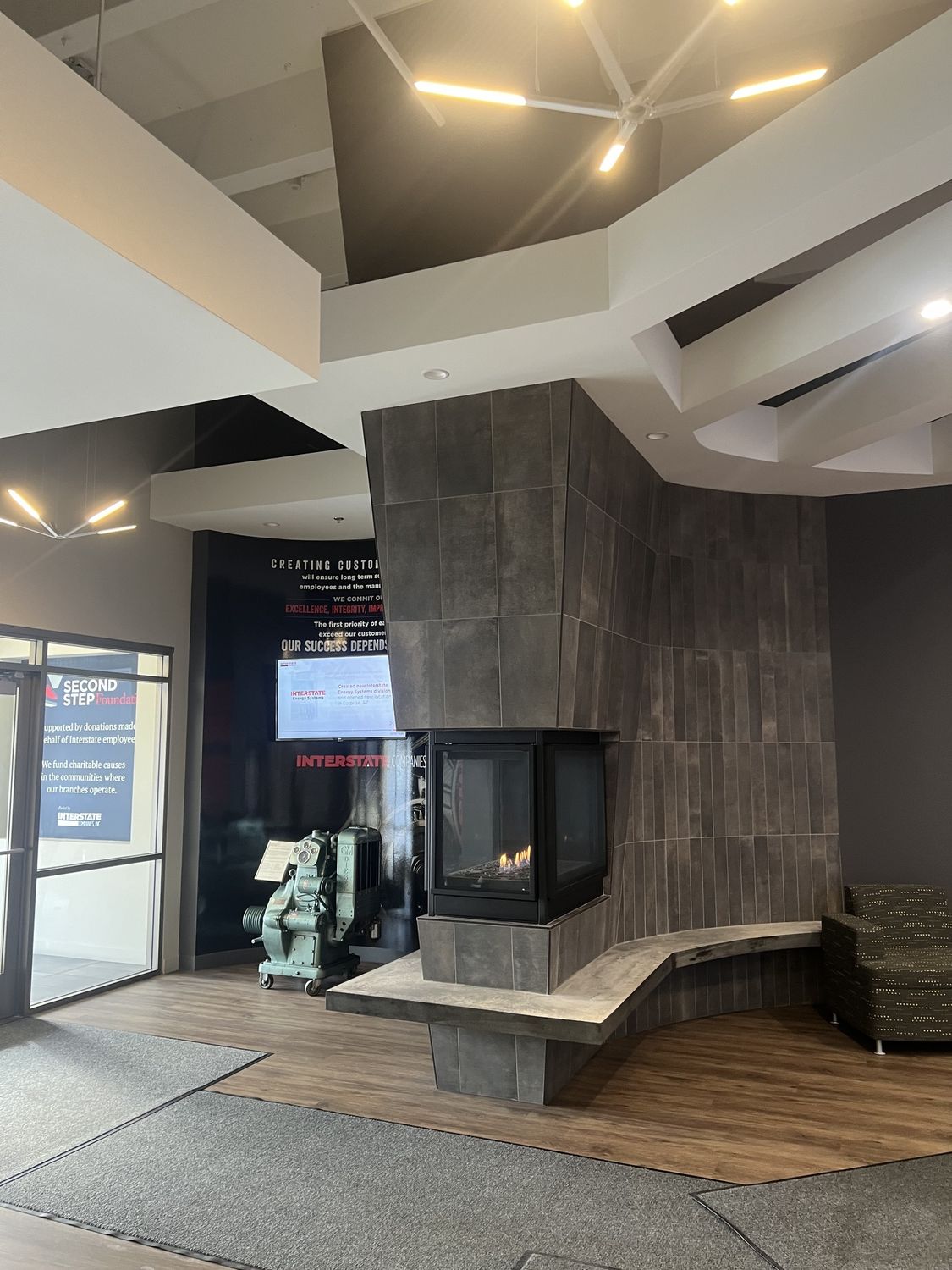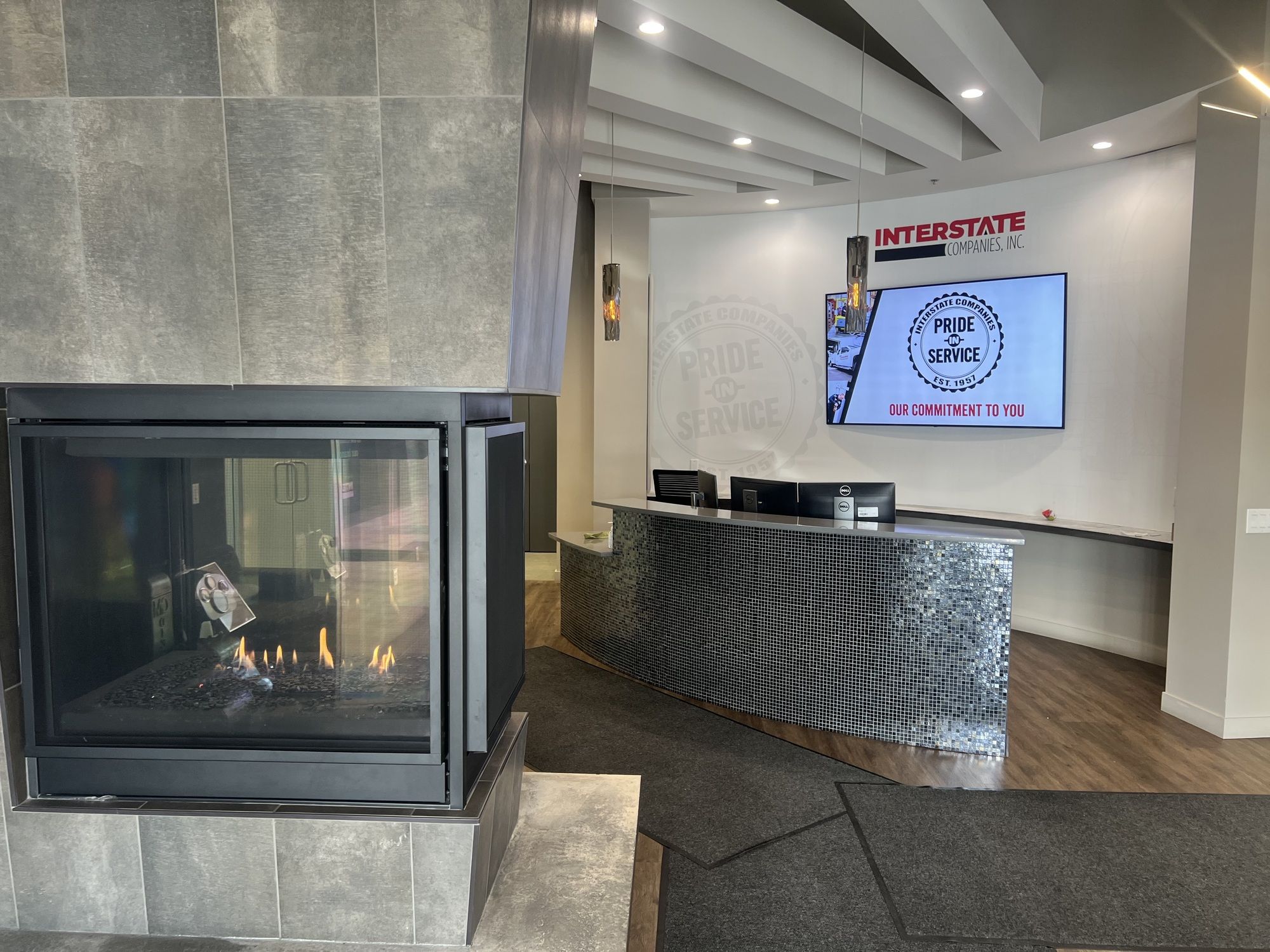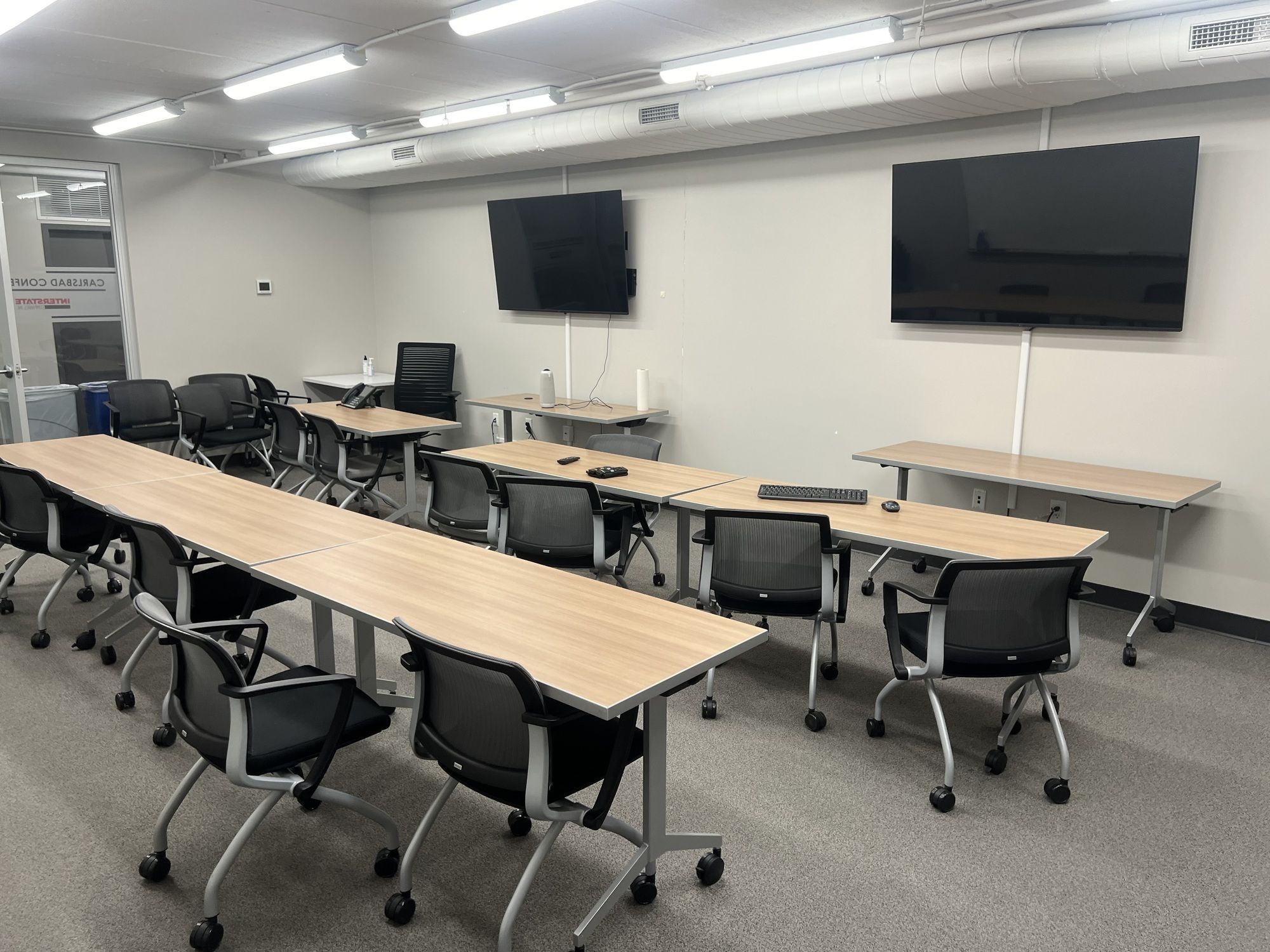 Renovated office/flex building with furniture, ample parking, and high visibility.
