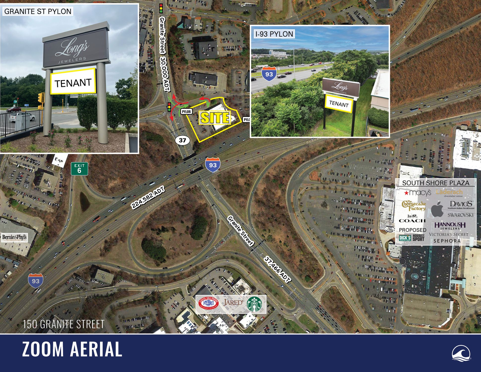 This property features: Great visibility from I‑93; Signalized Access off Granite Street & I‑95 (Exit 6); 224,582 ADT on I‑95
