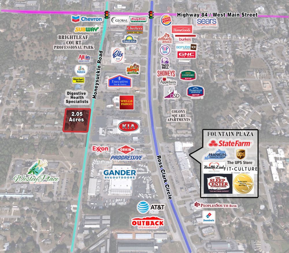 2.05 acres of commercial land for sale on Honeysuckle Rd.