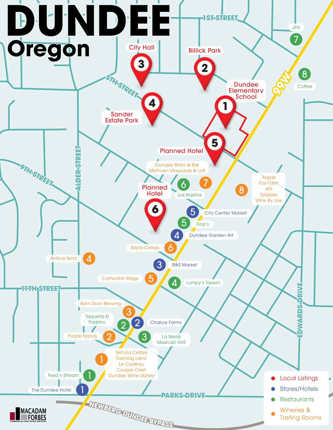 This property features: Large 4.47‑acre parcel in Downtown Dundee.; Opportunity for adaptive reuse of existing building or new development.; Prominent location at the intersection of Highway 99W and 5th Street, the gateway to Oregon's wine country.