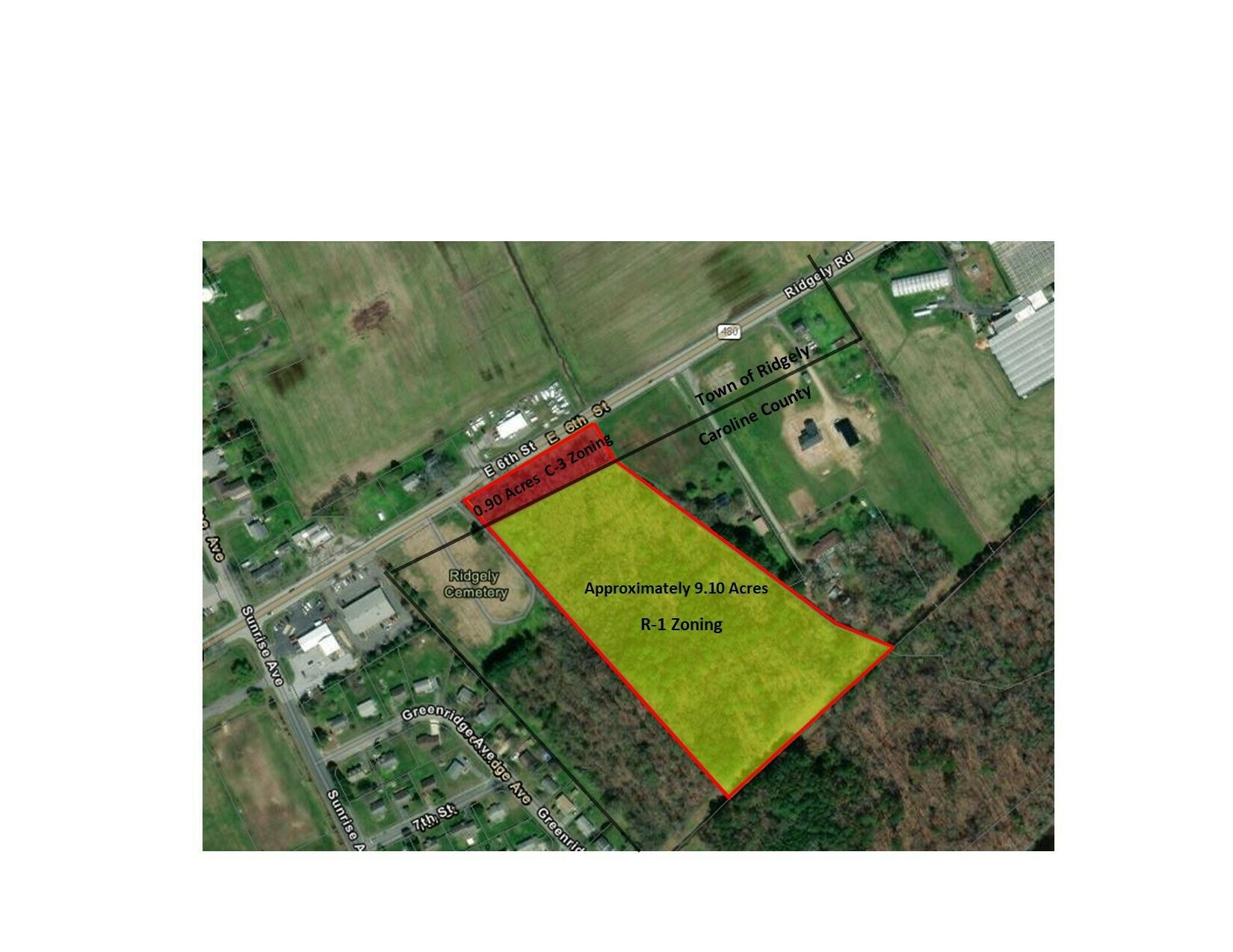 10 acres in Ridgely, with commercial and residential zoning.