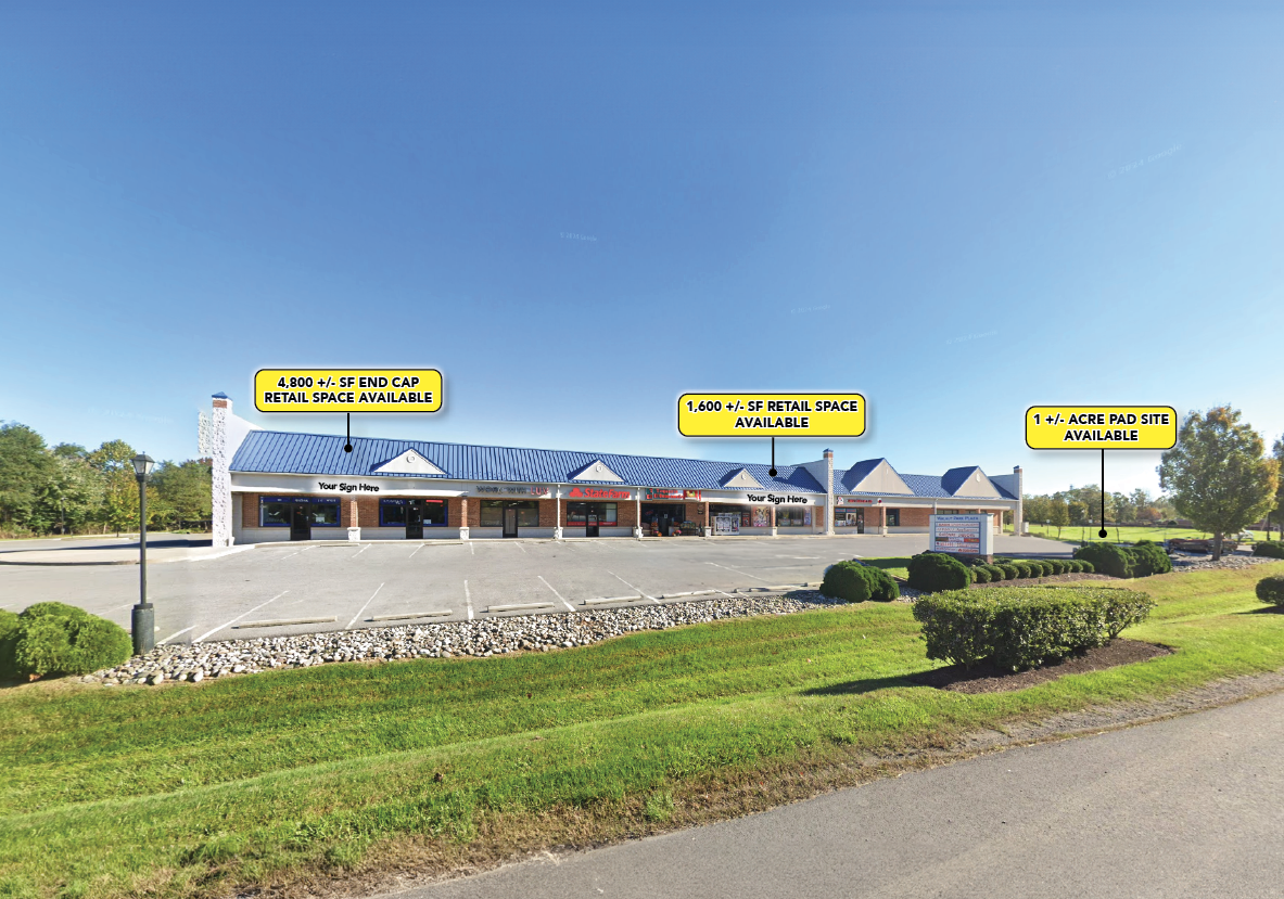 Retail space and a 1-acre pad site available for lease.