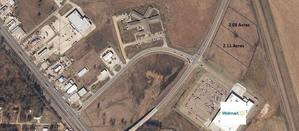 Two commercial lots available near Walmart in Ashdown, Arkansas.