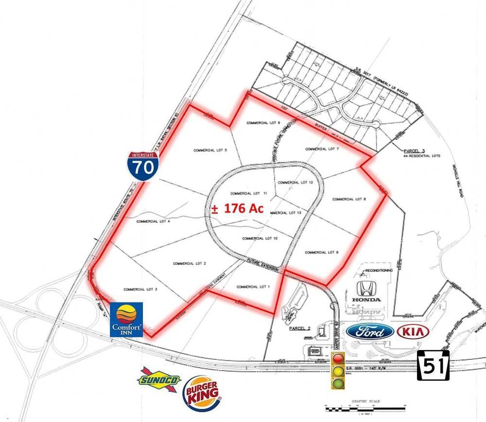 176+ acres of land with high visibility and excellent access.