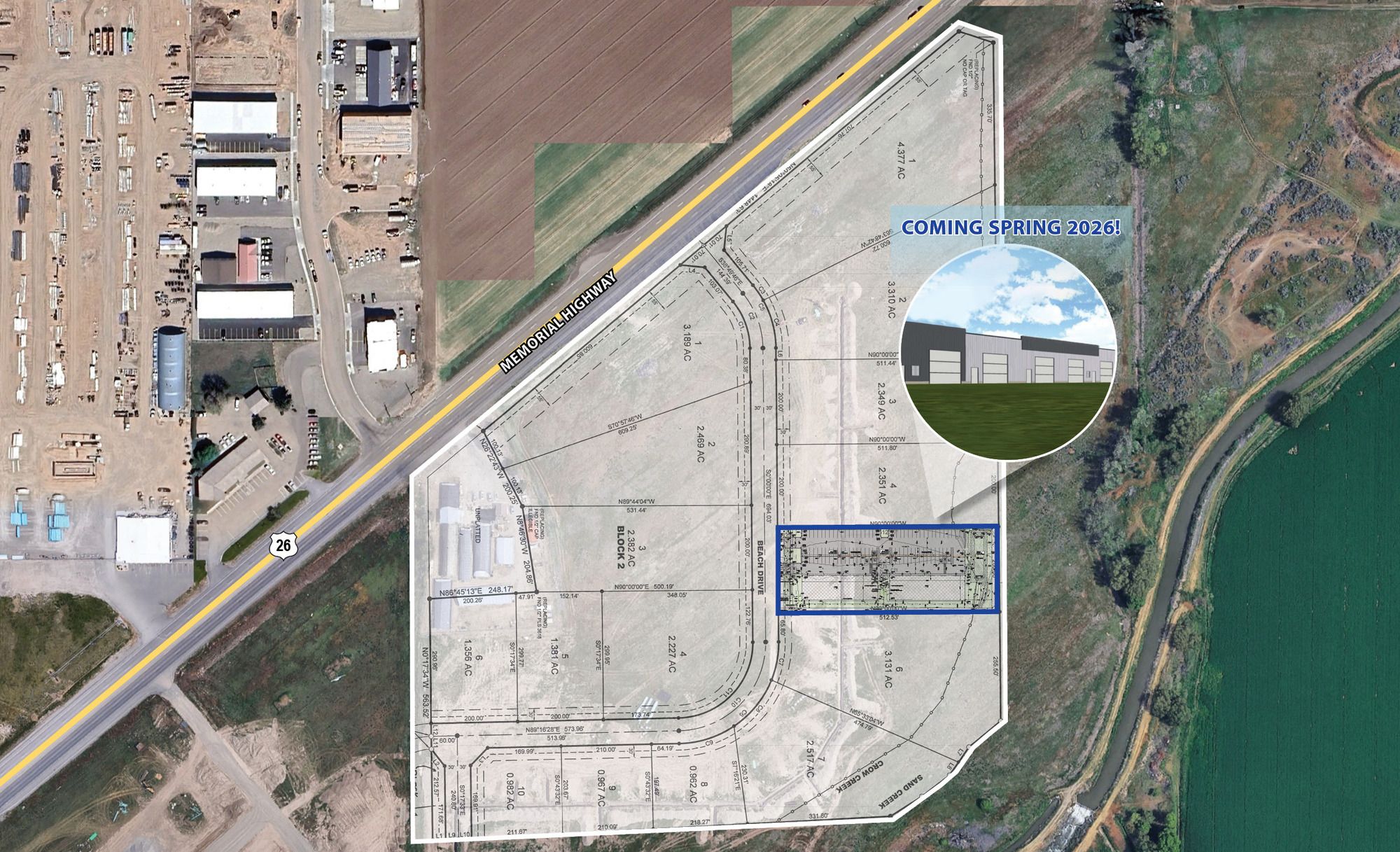 New industrial space with excellent regional access. Delivery Spring 2026.