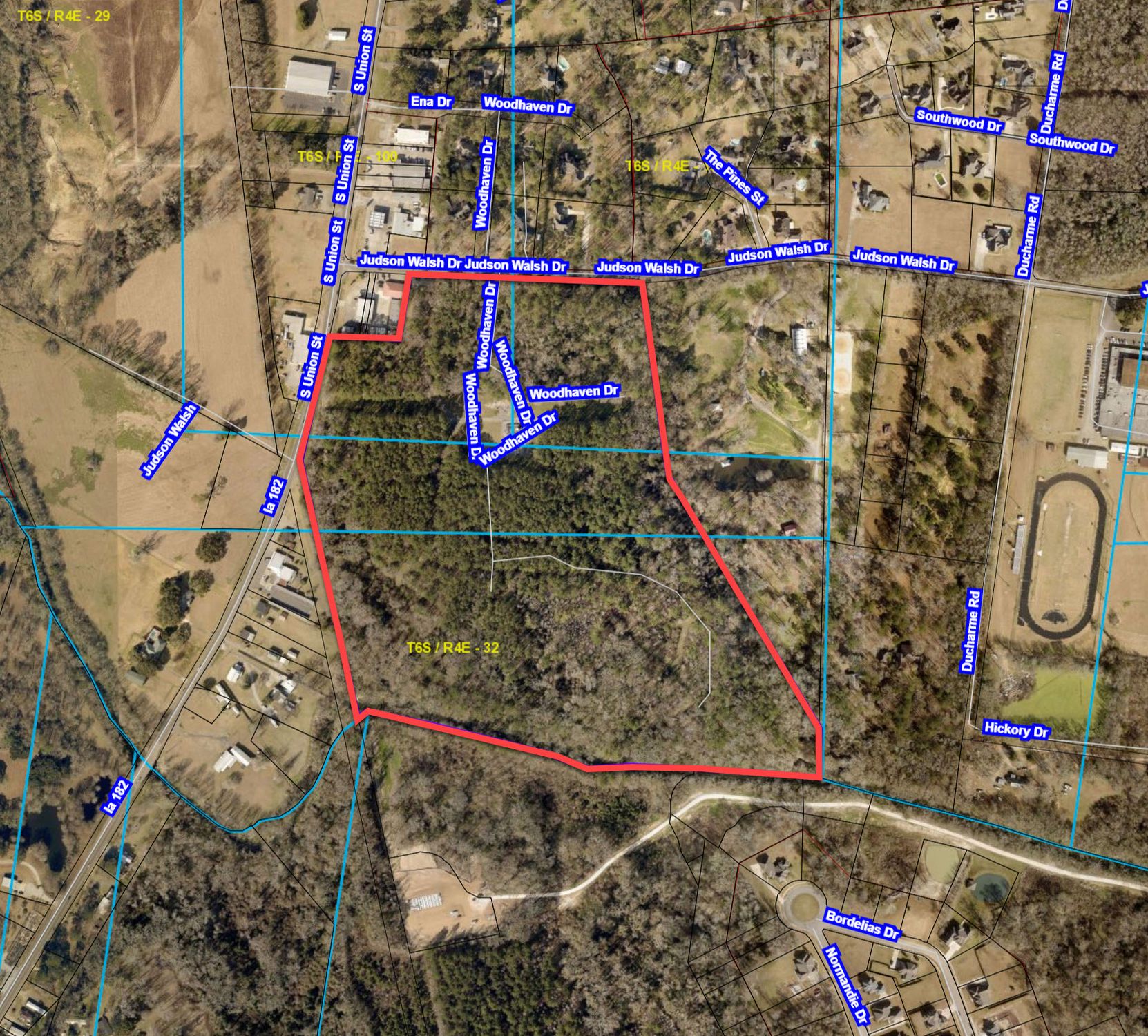 50.461 acres with frontage on Hwy. 182 and Judson Walsh.