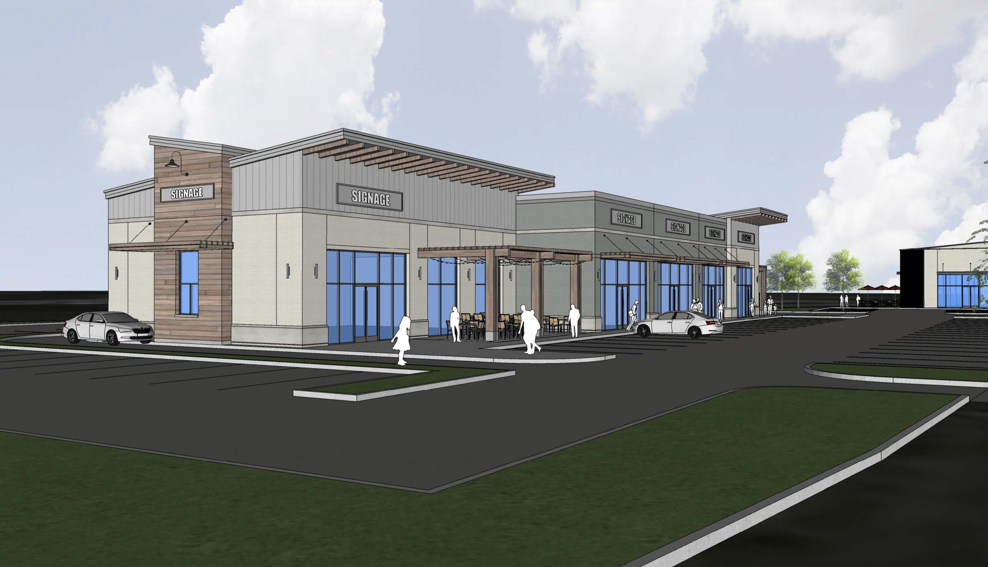 Retail, restaurant, and office opportunities in a mixed-use development.