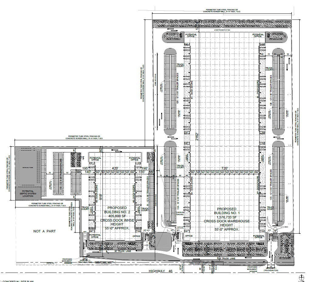 Two planned industrial buildings with ample parking on 112 acres.