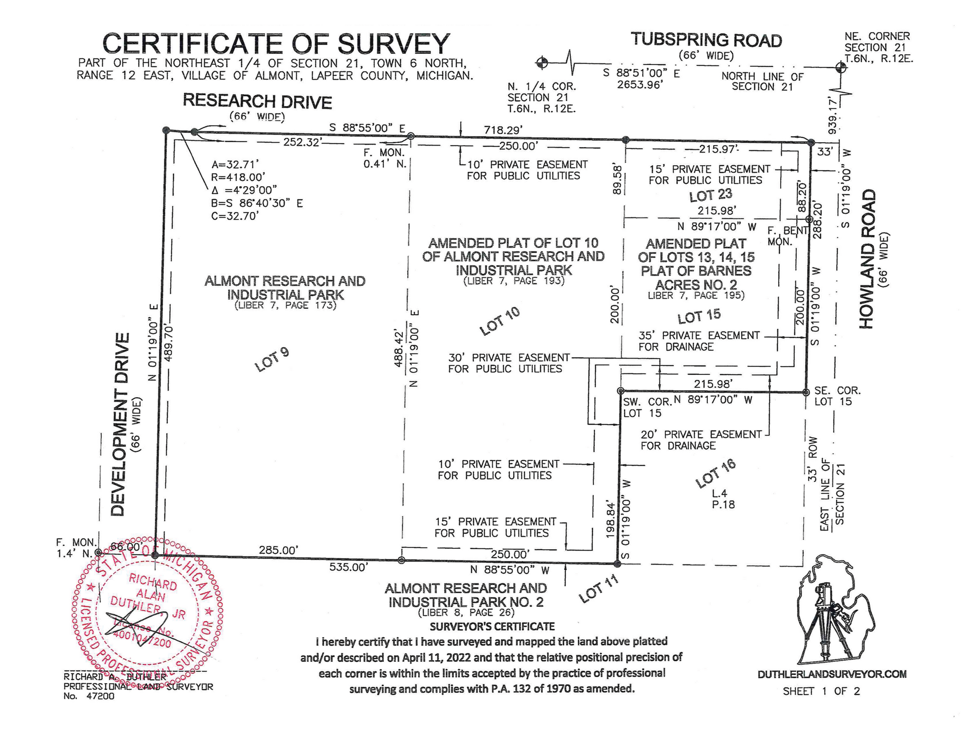 Property Features for Lot 9 - Almont Research & Industrial Park
