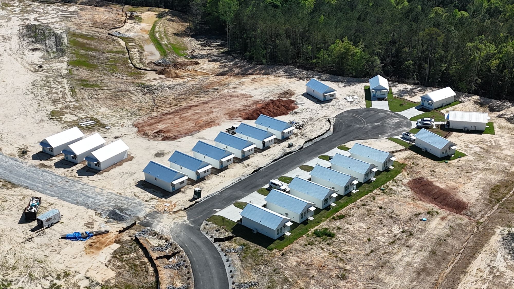 20 tiny homes with expansion potential near Highway 80.