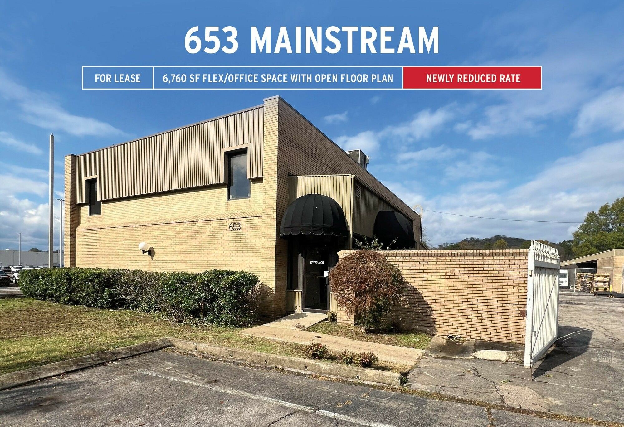 Adaptable commercial space featuring ample parking and essential utilities.