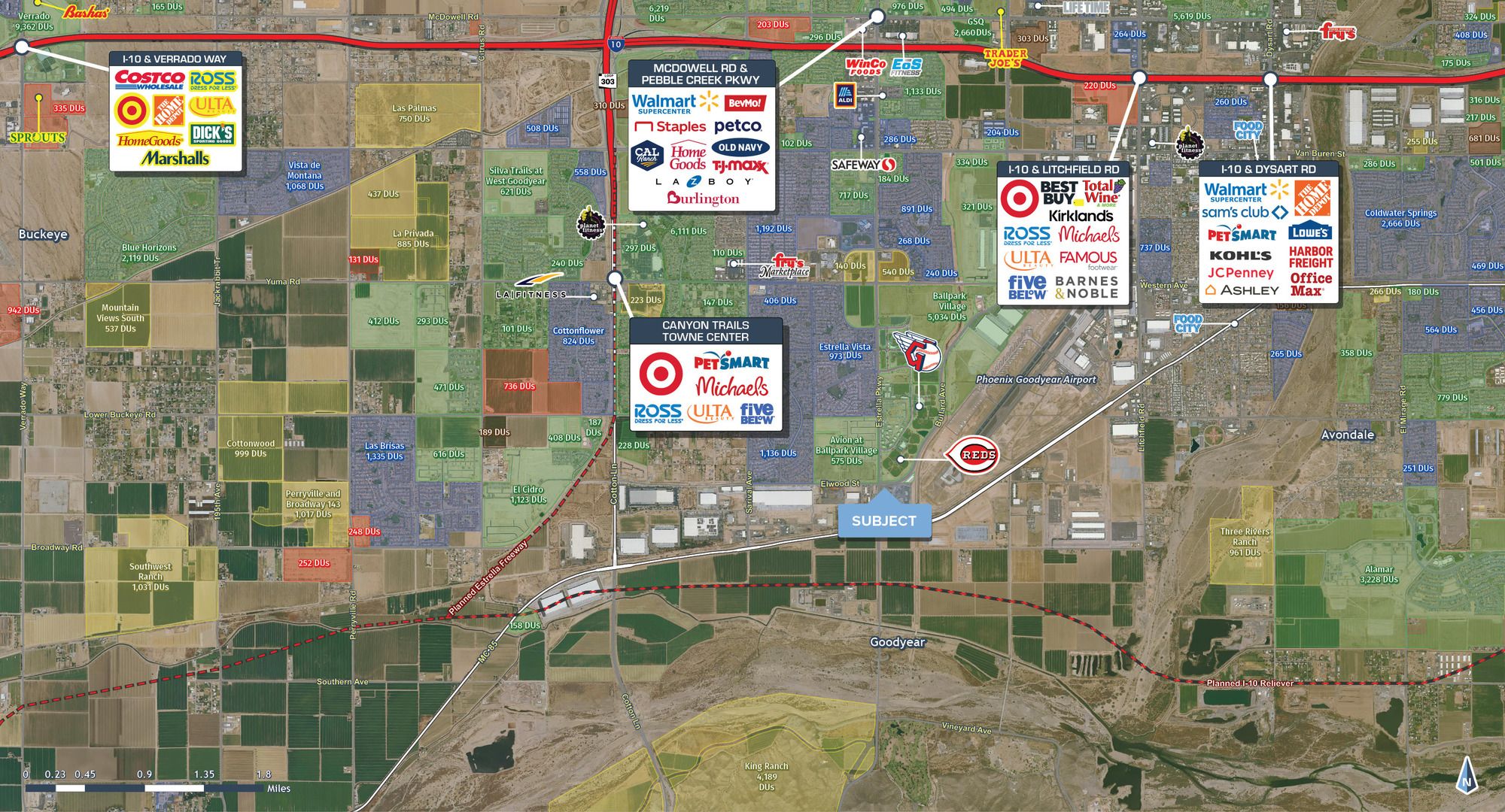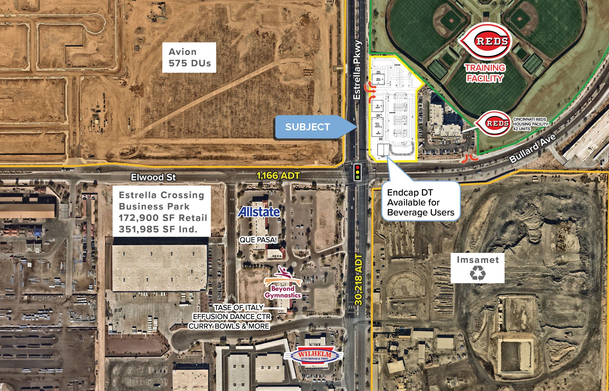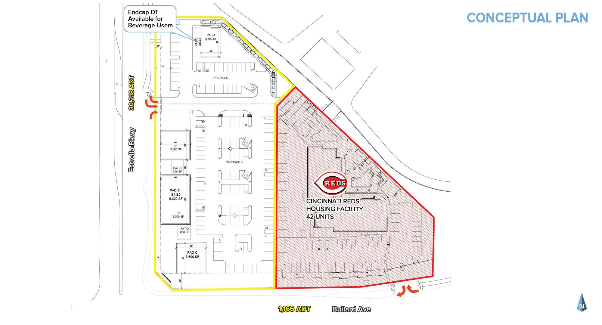 This property features: Prime location at the Goodyear Ballpark, home to Spring Training for the Cleveland Guardians & Cincinnati Reds.; High‑traffic event hub hosting national tournaments, concerts, festivals, and city‑wide events year‑round.; New retail development with drive‑thru, pad, and shop space opportunities.