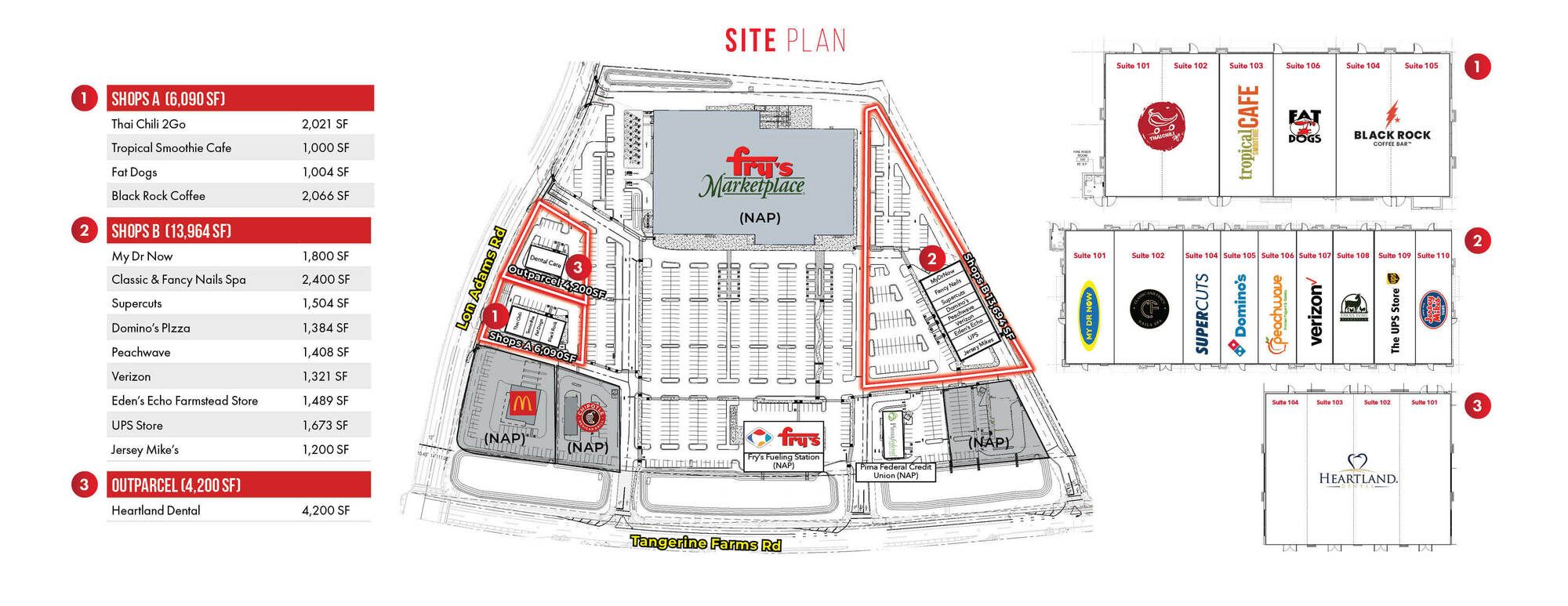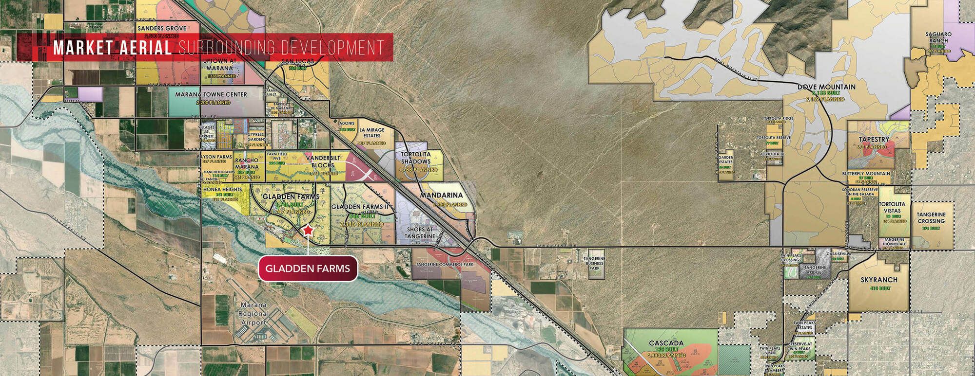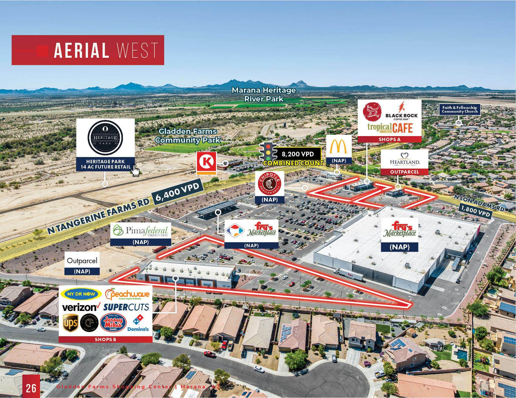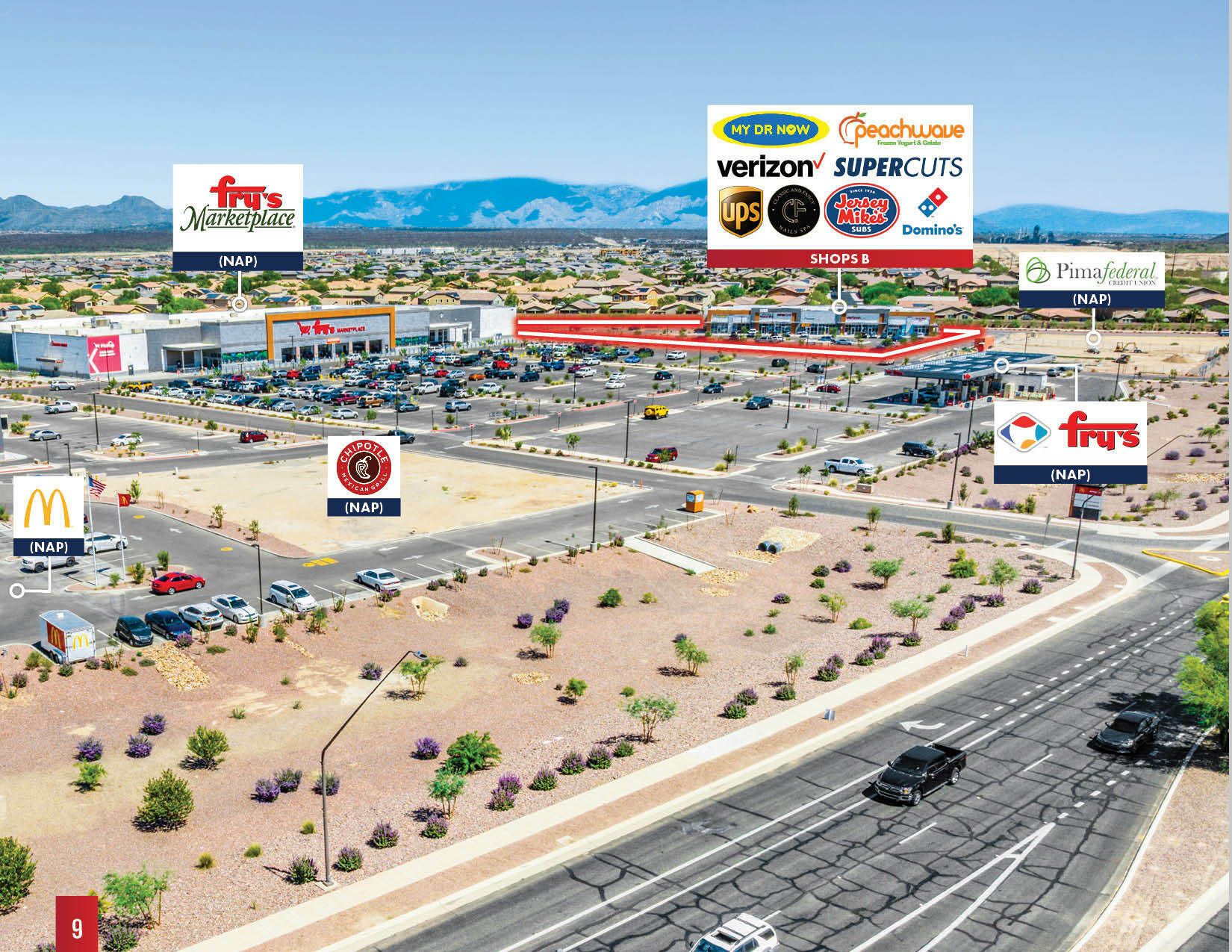 This property features: New Class "A" Grocery‑Anchored Shopping Center (2025 Construction) in Gladden Farms.; Located in a rapidly growing Tucson suburb (Marana, AZ).; High Traffic Counts: **88,000 VPD**.