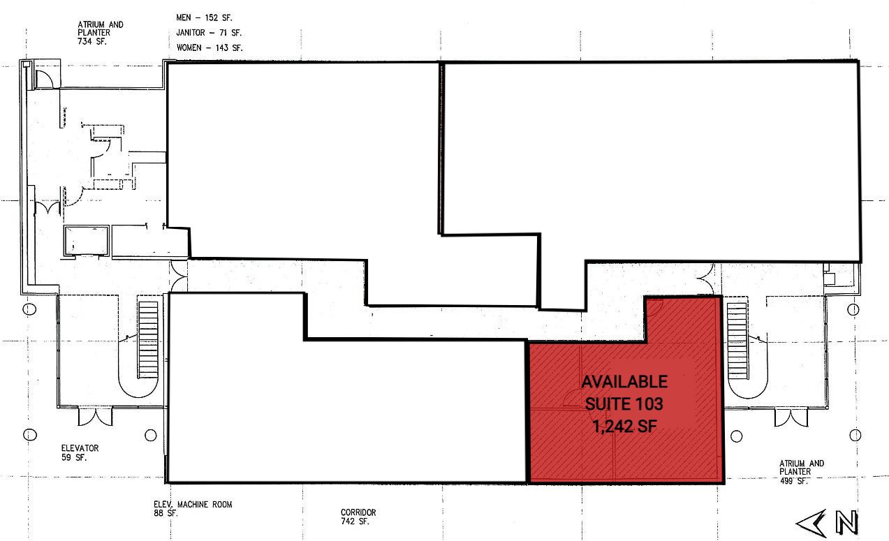 Efficient office setting with updated common areas and abundant parking.