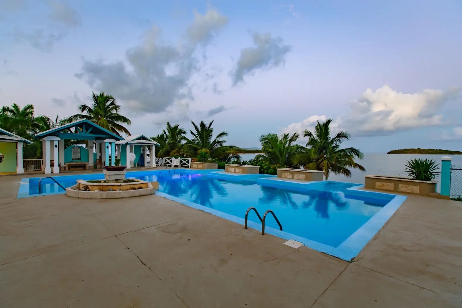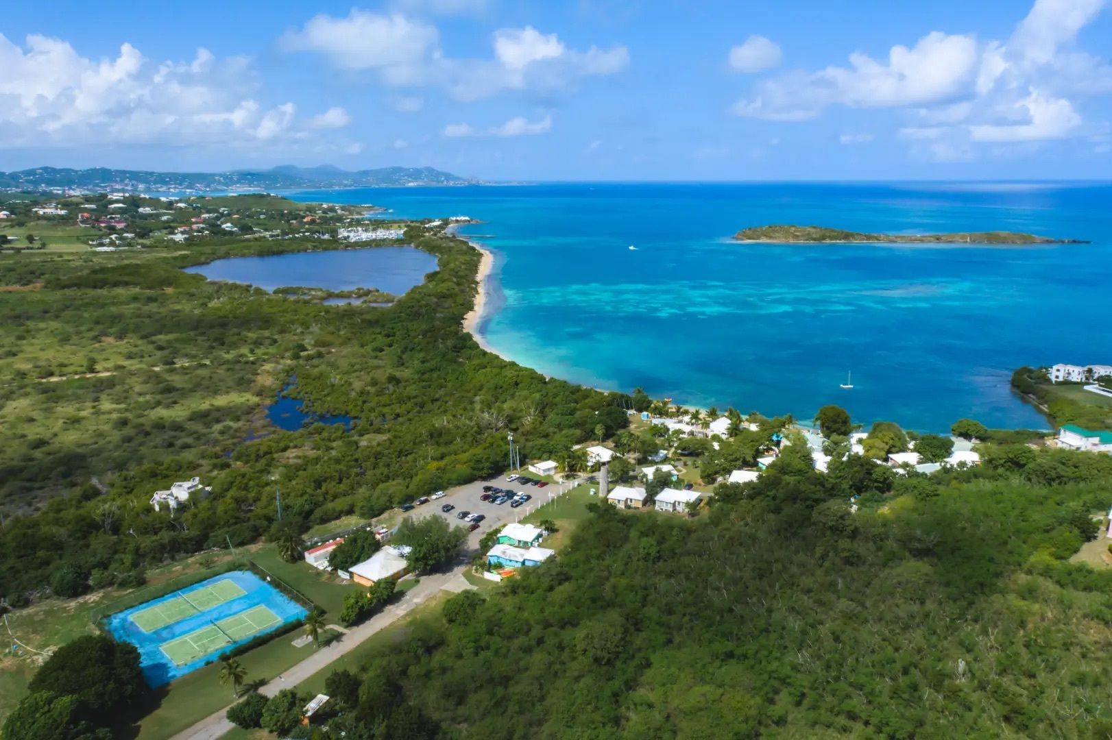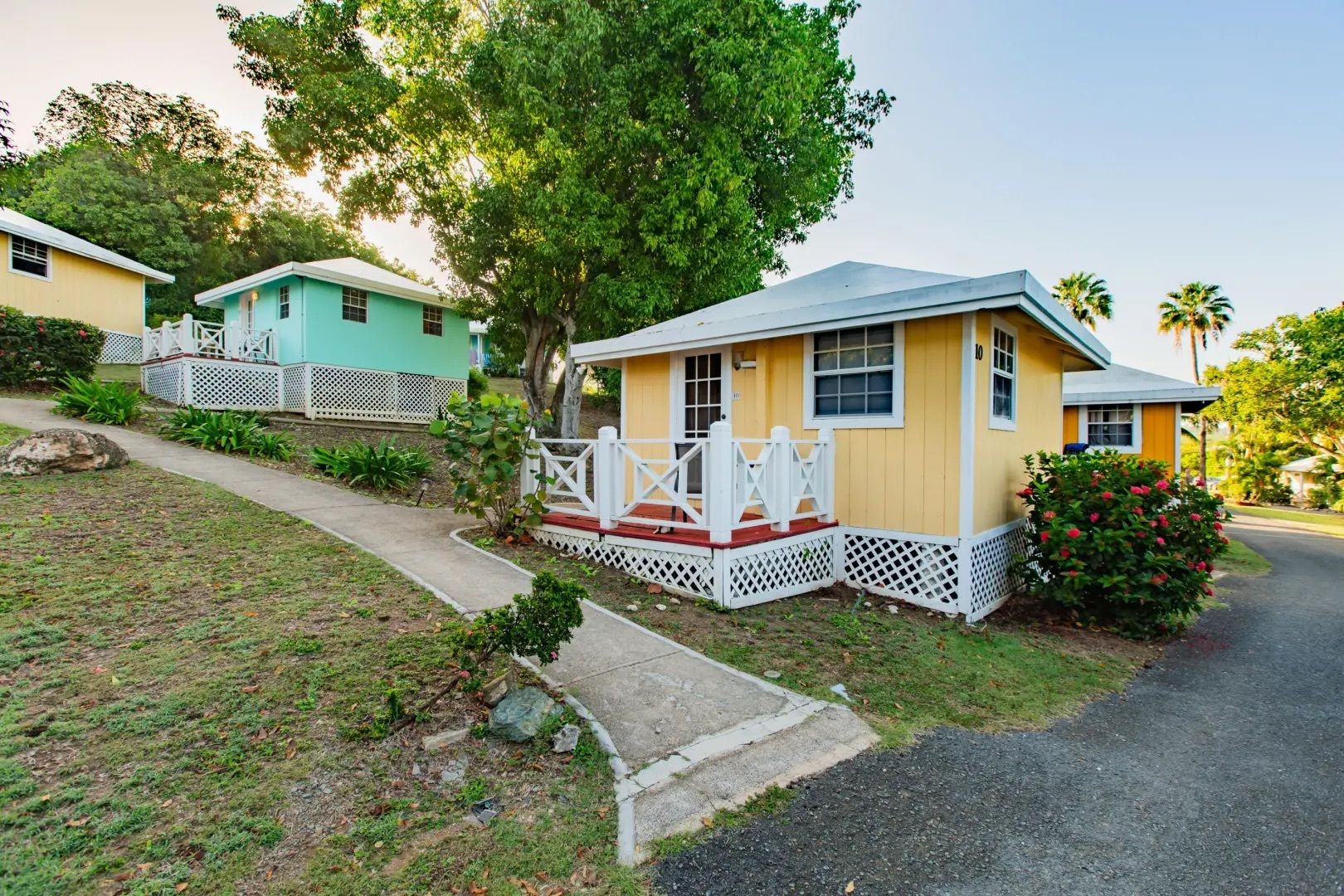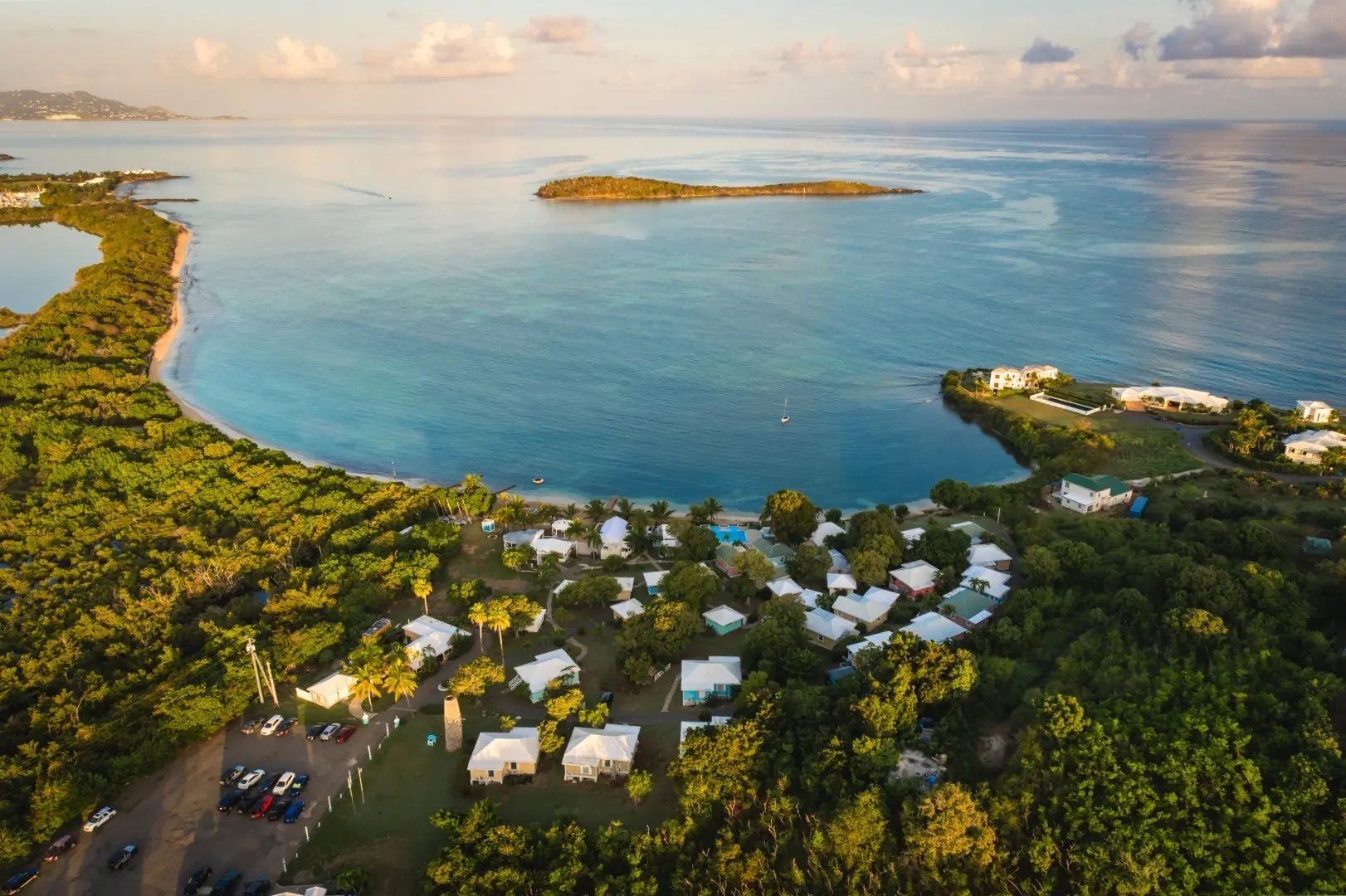 This property features: Beachfront bar and restaurant with gazebo seating.; 50 island‑style cottages on a gentle hillside with white sandy beach.; Additional acreage for development (cottages, hotel rooms, condos, or single‑family homes).