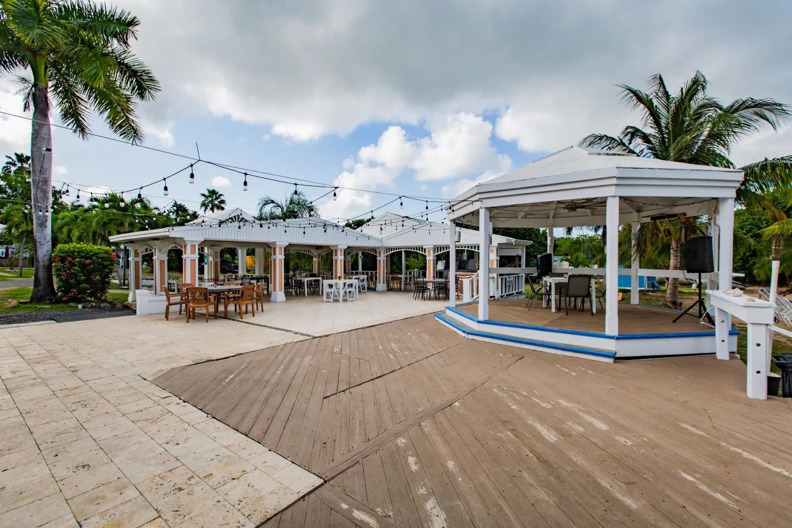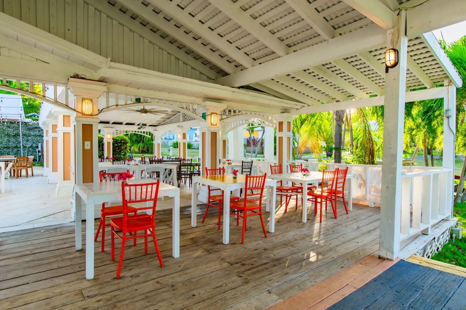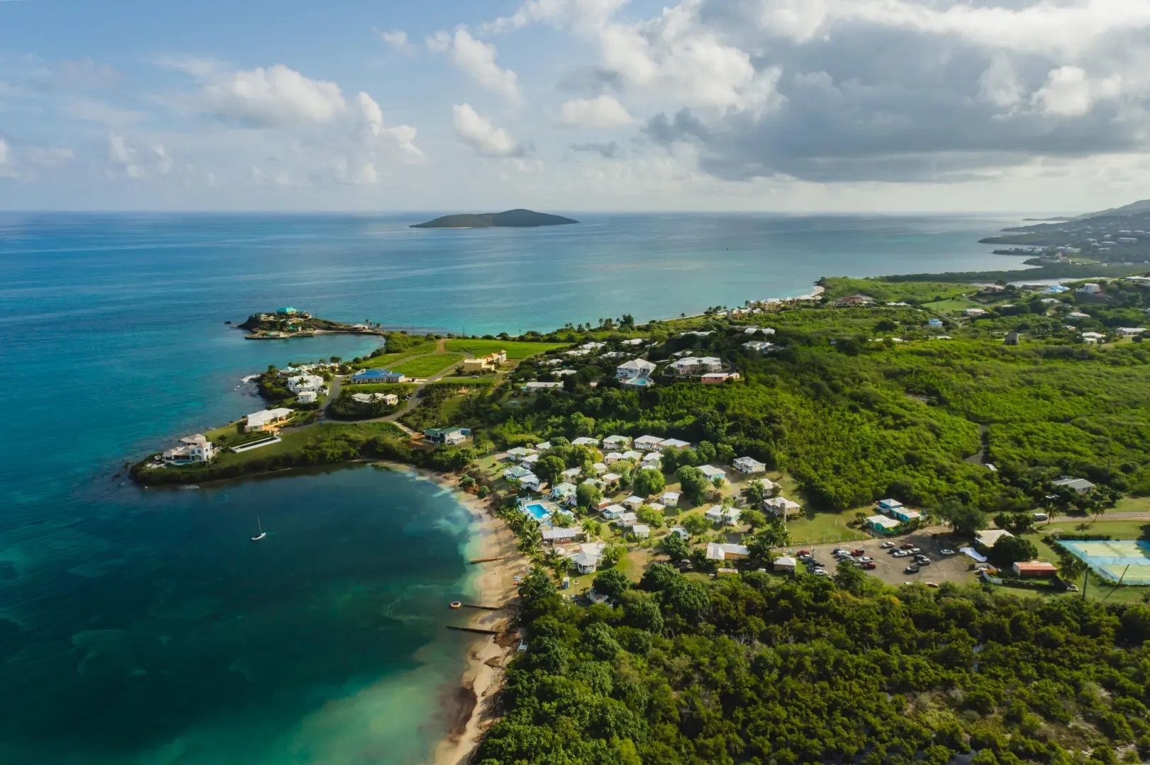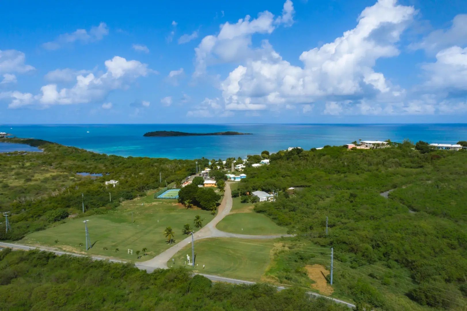 This property features: Beachfront bar and restaurant with gazebo seating.; 50 island‑style cottages on a gentle hillside with white sandy beach.; Additional acreage for development (cottages, hotel rooms, condos, or single‑family homes).