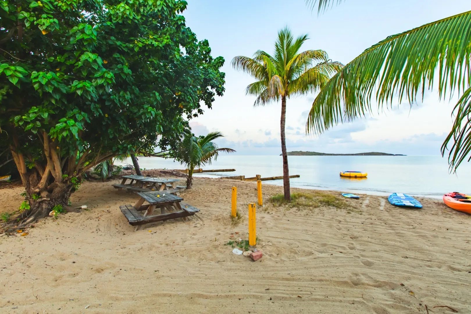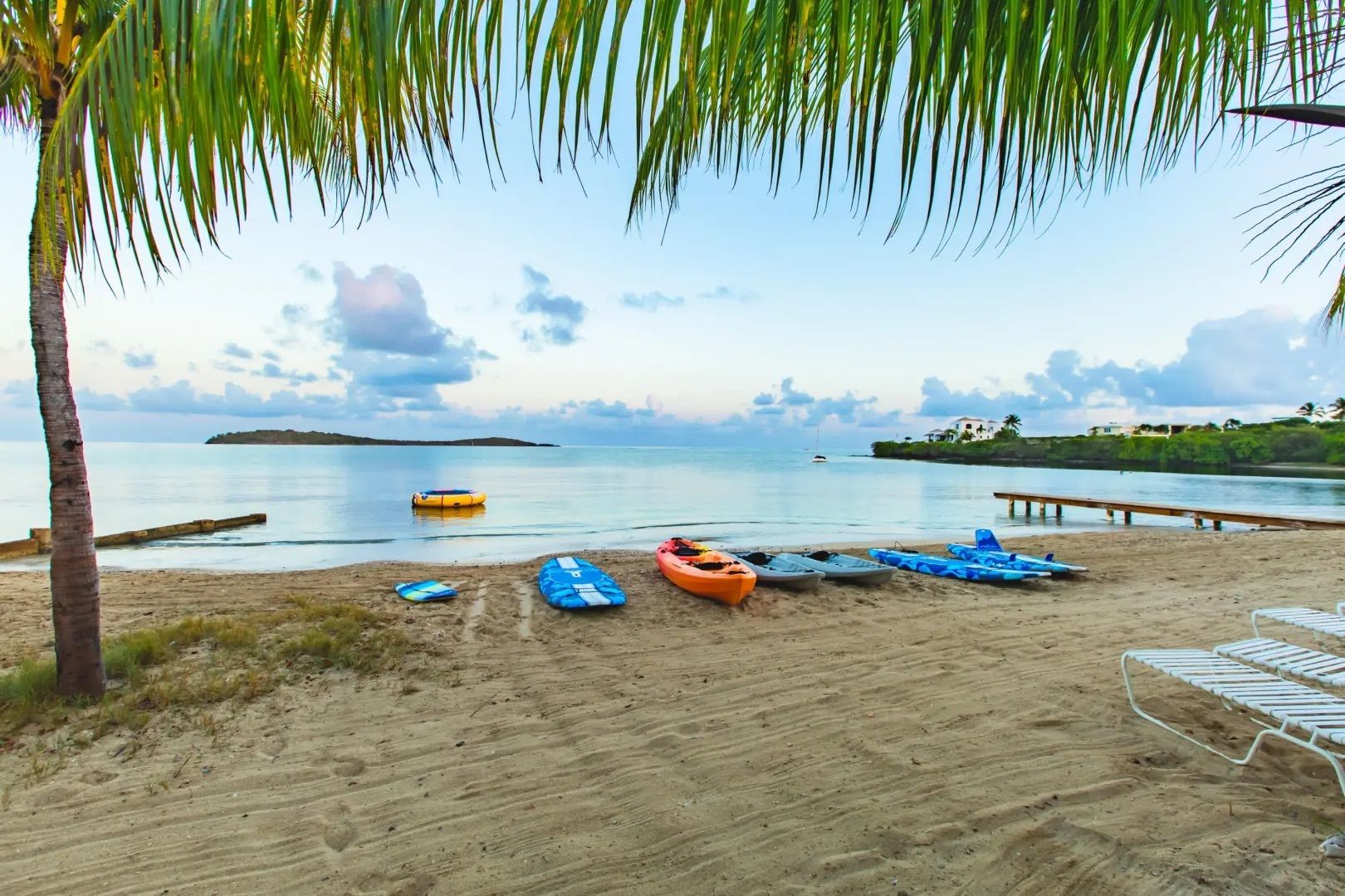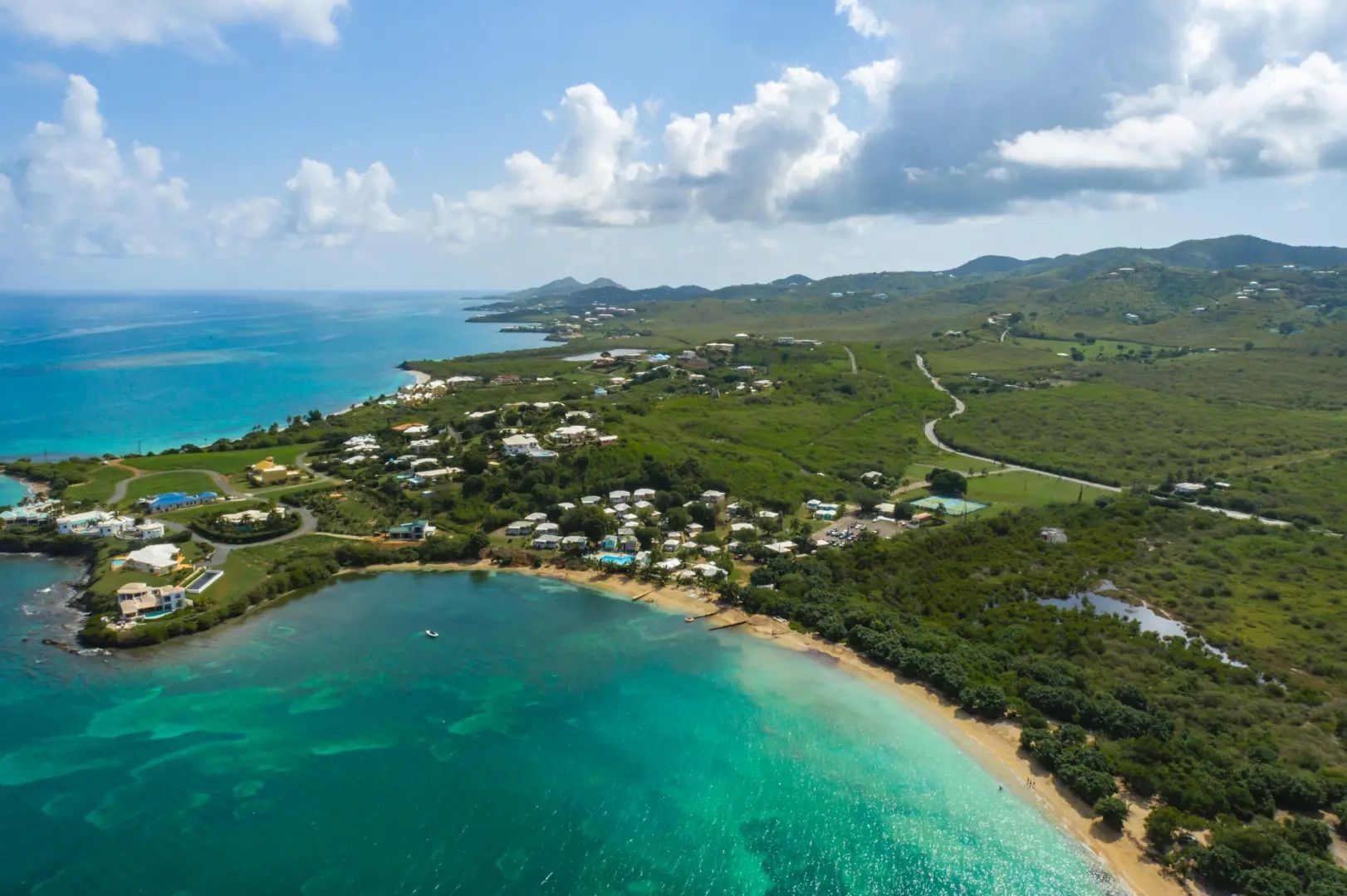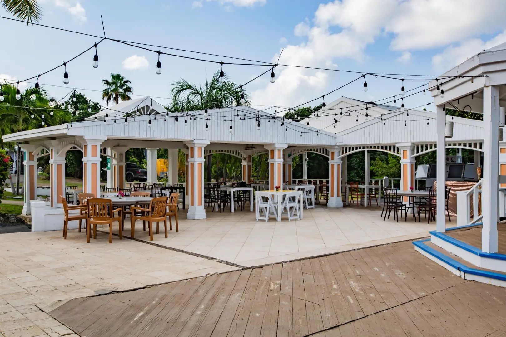 This property features: Beachfront bar and restaurant with gazebo seating.; 50 island‑style cottages on a gentle hillside with white sandy beach.; Additional acreage for development (cottages, hotel rooms, condos, or single‑family homes).