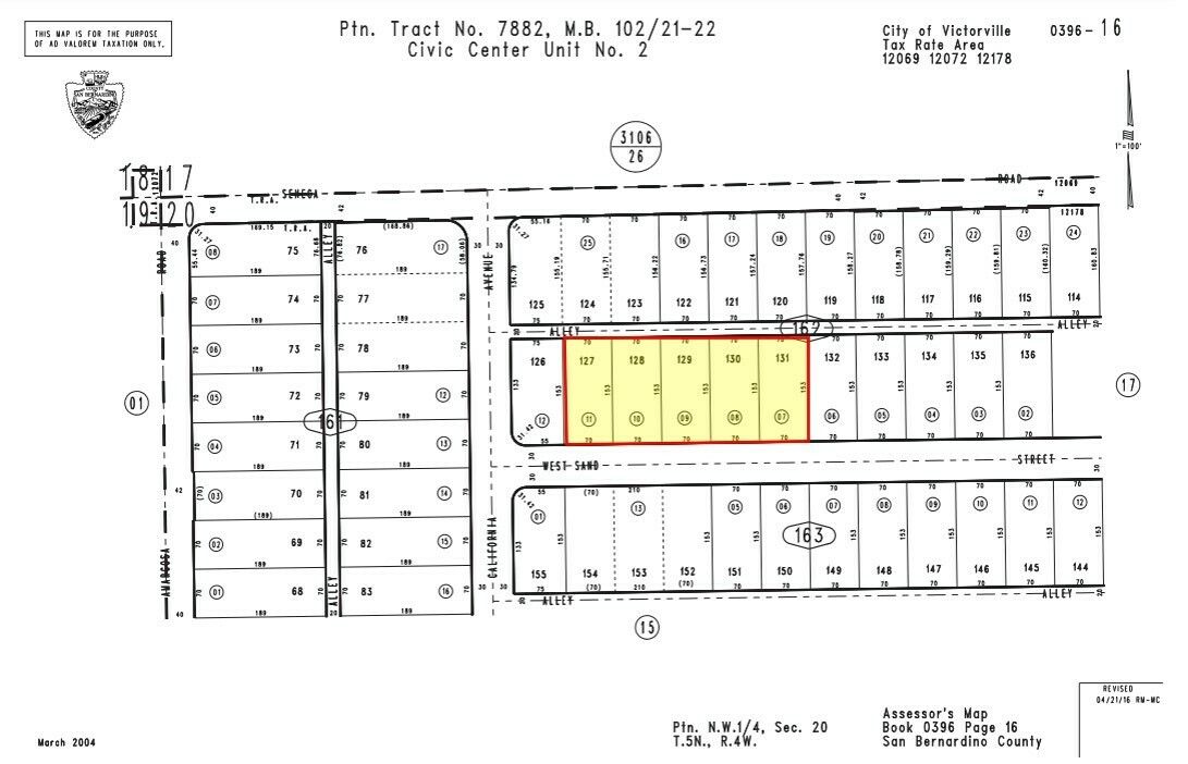 This \u00b11.25-acre parcel of unimproved commercial land is available for sale on Sand St in Victorville. The property consists of 5 contiguous parcels, identified as APNs 0396-162-07, 08, 09, 10, and 11. Zoned Civic Business Center under the Civic Center Specific Plan, the site permits the development of professional offices and associated retail and service uses catering to the neighboring government and service districts. Essential utilities, including water, sewer, and power, are available at the site. The property's location within a Qualified Economic Opportunity Zone may qualify it for preferential tax treatment. The site benefits from quick access to Palmdale Highway and Interstate 15. The surrounding area includes Victorville City Hall, Victorville Superior Court, InterCon Security, Mojave Desert Air Quality Management District, and The Woodall Group.