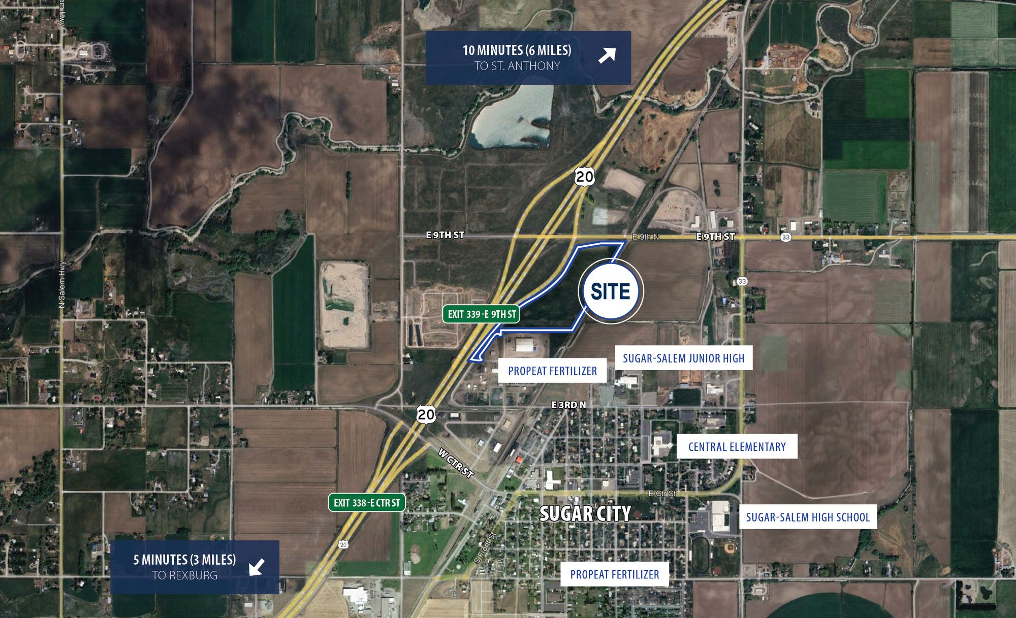 25+ acre commercial land with highway frontage in Sugar City.