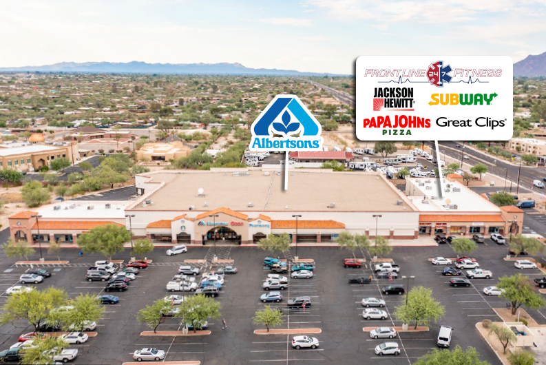 Retail space for sale anchored by Albertsons in Tucson.