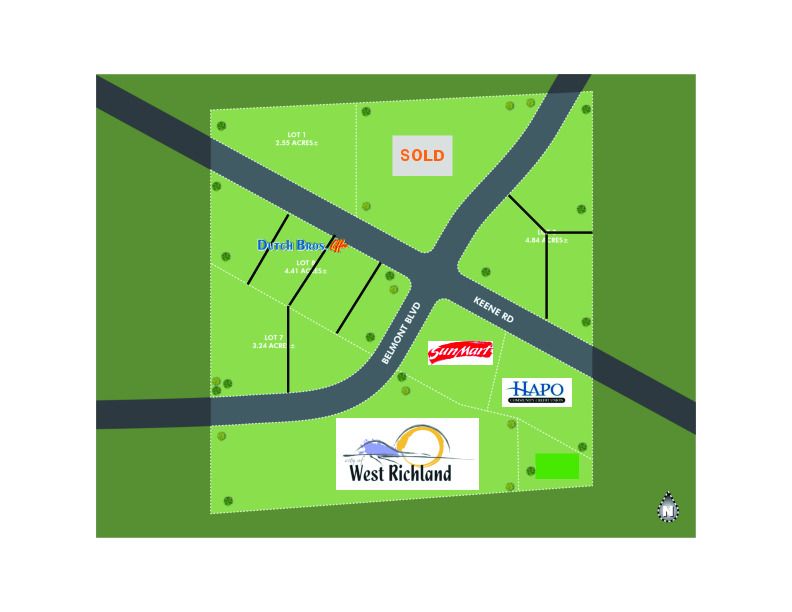 Retail lots available in fast-growing West Richland intersection.